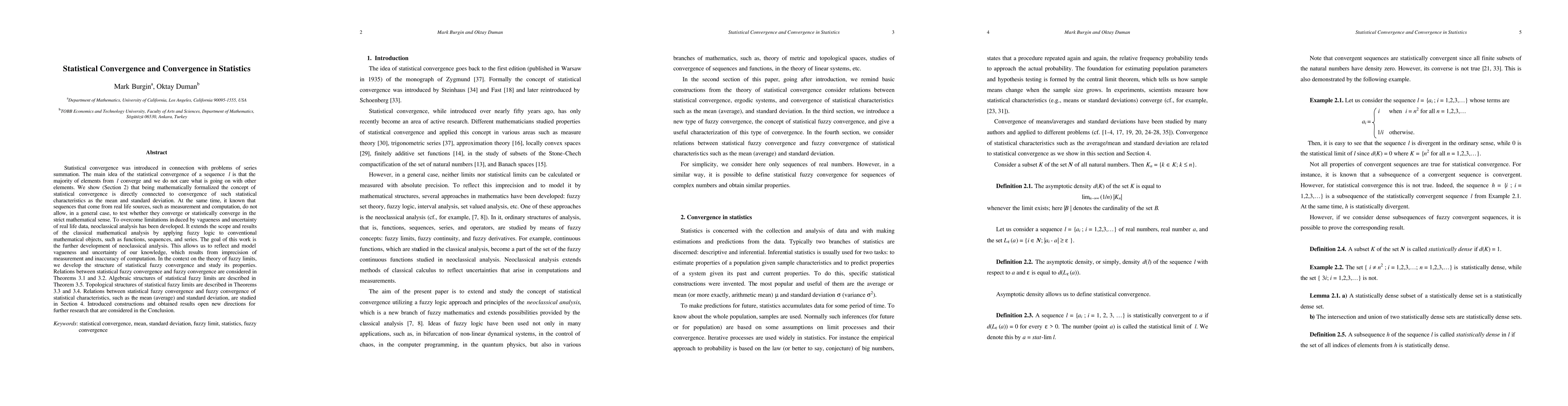 The research focuses on developing statistical convergence and its connection to convergence in statistics.