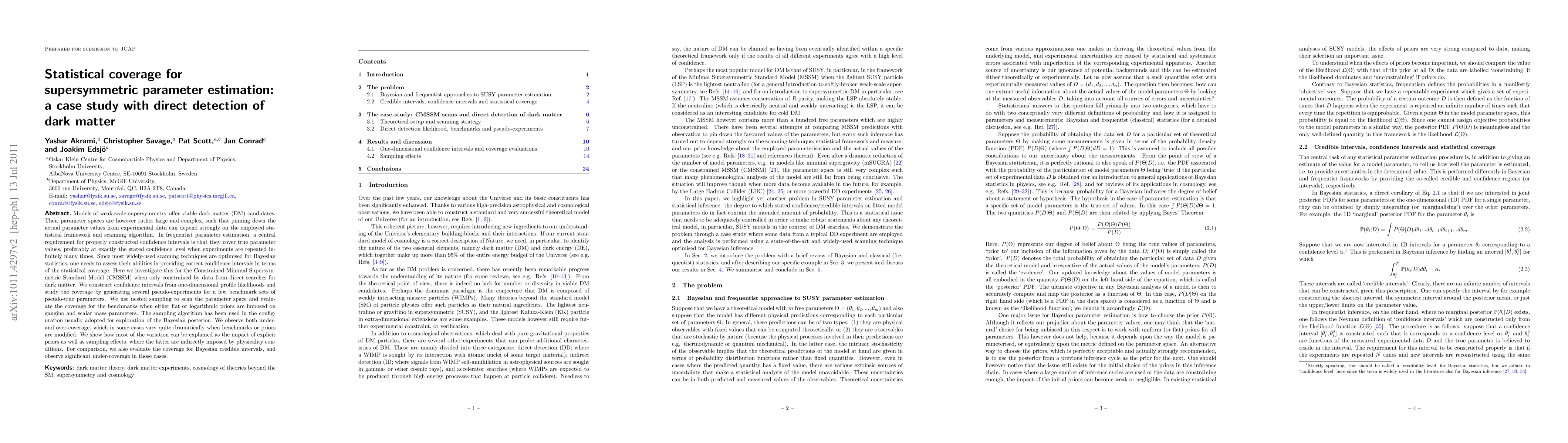 Models of weak-scale supersymmetry offer viable dark matter (DM) candidates. Their parameter spaces are however rather large and complex, such that pinning down the actual parameter values from experimental data can depend strongly on the employed statistical framework and scanning algorithm. In frequentist parameter estimation, a central requirement for properly constructed confidence intervals is that they cover true parameter values, preferably at exactly the stated confidence level when experiments are repeated infinitely many times. Since most widely-used scanning techniques are optimised for Bayesian statistics, one needs to assess their abilities in providing correct confidence intervals in terms of the statistical coverage. Here we investigate this for the Constrained Minimal Supersymmetric Standard Model (CMSSM) when only constrained by data from direct searches for dark matter. We construct confidence intervals from one-dimensional profile likelihoods and study the coverage by generating several pseudo-experiments for a few benchmark sets of pseudo-true parameters. We use nested sampling to scan the parameter space and evaluate the coverage for the benchmarks when either flat or logarithmic priors are imposed on gaugino and scalar mass parameters. The sampling algorithm has been used in the configuration usually adopted for exploration of the Bayesian posterior. We observe both under- and over-coverage, which in some cases vary quite dramatically when benchmarks or priors are modified. We show how most of the variation can be explained as the impact of explicit priors as well as sampling effects, where the latter are indirectly imposed by physicality conditions. For comparison, we also evaluate the coverage for Bayesian credible intervals, and observe significant under-coverage in those cases.