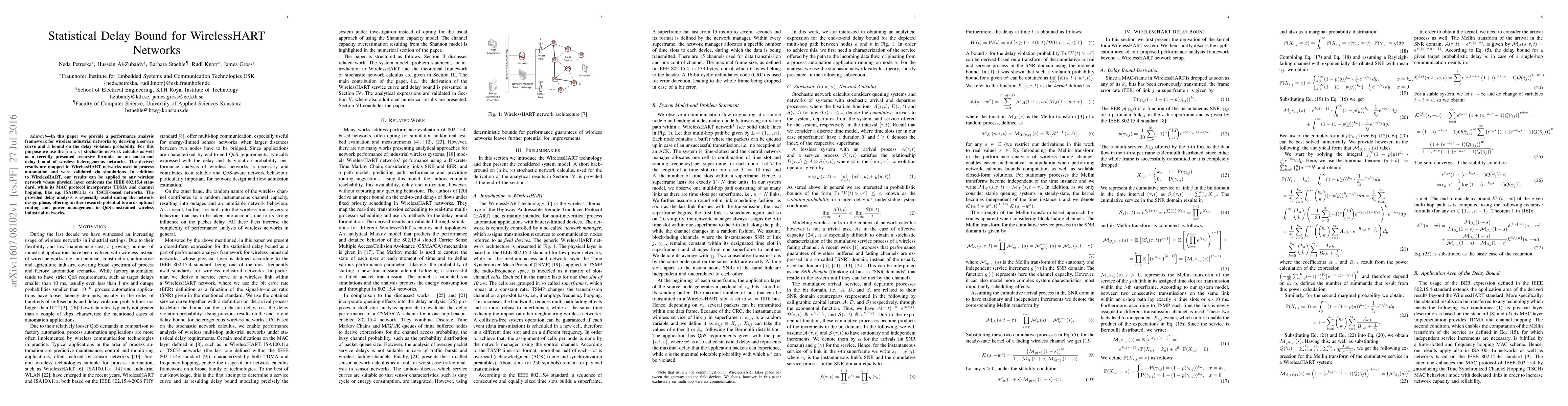 Researchers derive a performance analysis framework for wireless industrial networks, providing a delay bound and probability of delay violation for WirelessHART networks, with implications for network design and QoS-constrained wireless networks.