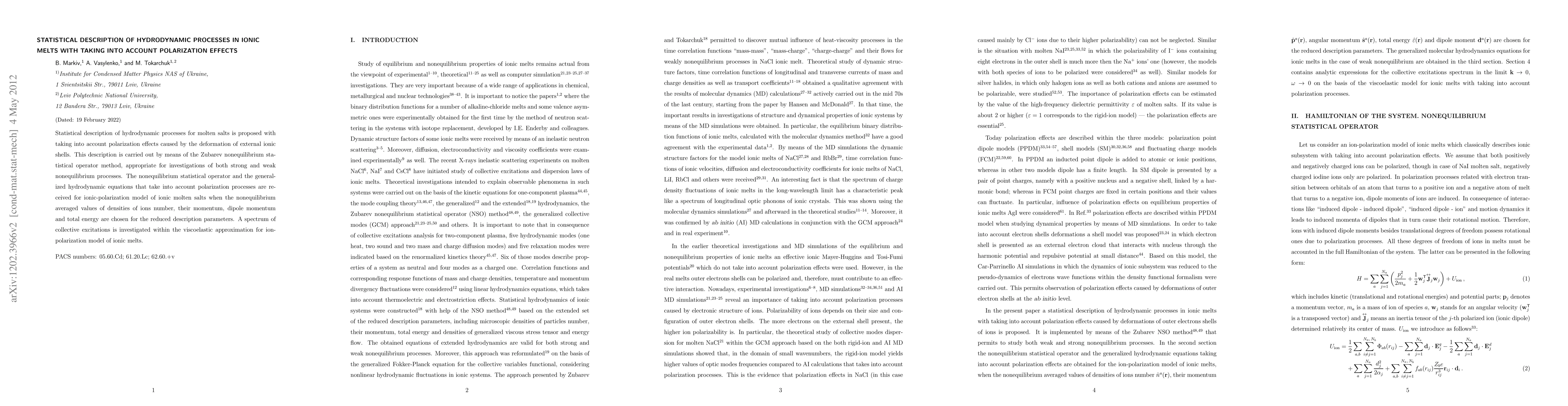 Researchers developed a statistical model to describe hydrodynamic processes in ionic melts, accounting for polarization effects that occur when external ions deform their shells. The model provides new insights into the collective excitations of these materials.