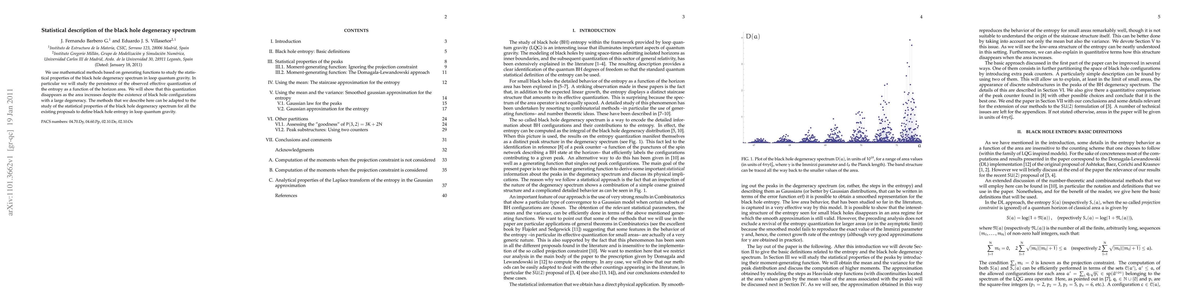We use mathematical methods based on generating functions to study the statistical properties of the black hole degeneracy spectrum in loop quantum gravity. In particular we will study the persistence of the observed effective quantization of the entropy as a function of the horizon area. We will show that this quantization disappears as the area increases despite the existence of black hole configurations with a large degeneracy. The methods that we describe here can be adapted to the study of the statistical properties of the black hole degeneracy spectrum for all the existing proposals to define black hole entropy in loop quantum gravity.