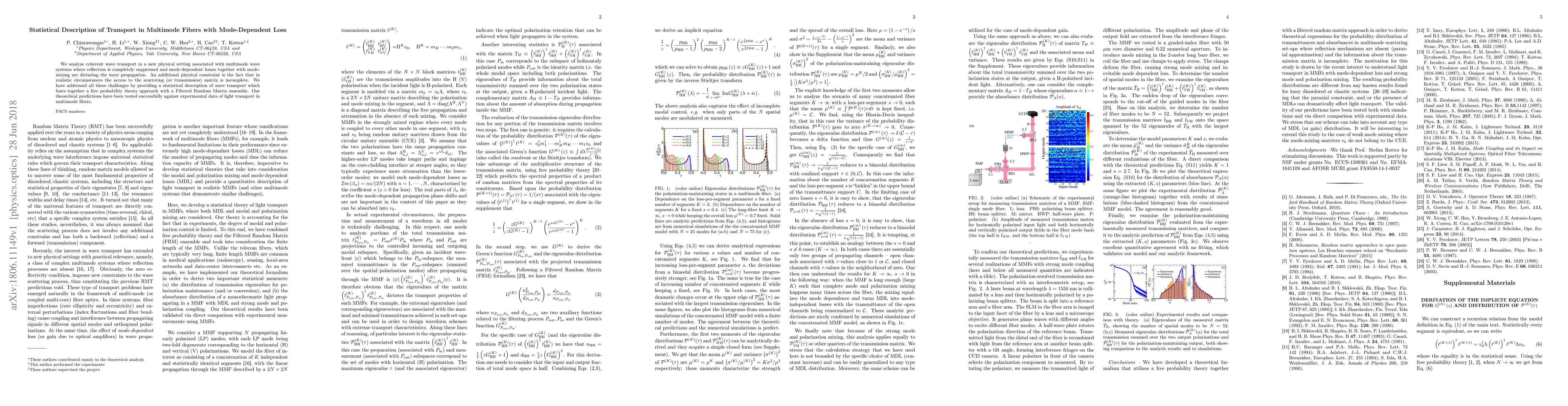 This paper presents a statistical description of coherent wave transport in multimode fibers, focusing on mode-dependent loss and mode-mixing. The study combines free probability theory with a Filtered Random Matrix ensemble to address challenges posed by incomplete access to the scattering matrix, and validates the theoretical model with experimental data.