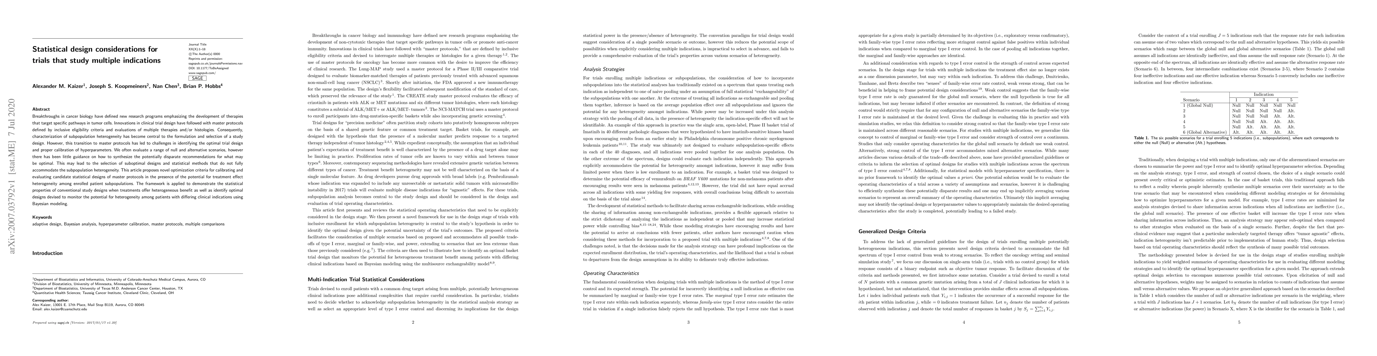 Breakthroughs in cancer biology have defined new research programs emphasizing the development of therapies that target specific pathways in tumor cells. Innovations in clinical trial design have followed with master protocols defined by inclusive eligibility criteria and evaluations of multiple therapies and/or histologies. Consequently, characterization of subpopulation heterogeneity has become central to the formulation and selection of a study design. However, this transition to master protocols has led to challenges in identifying the optimal trial design and proper calibration of hyperparameters. We often evaluate a range of null and alternative scenarios, however there has been little guidance on how to synthesize the potentially disparate recommendations for what may be optimal. This may lead to the selection of suboptimal designs and statistical methods that do not fully accommodate the subpopulation heterogeneity. This article proposes novel optimization criteria for calibrating and evaluating candidate statistical designs of master protocols in the presence of the potential for treatment effect heterogeneity among enrolled patient subpopulations. The framework is applied to demonstrate the statistical properties of conventional study designs when treatments offer heterogeneous benefit as well as identify optimal designs devised to monitor the potential for heterogeneity among patients with differing clinical indications using Bayesian modeling.
