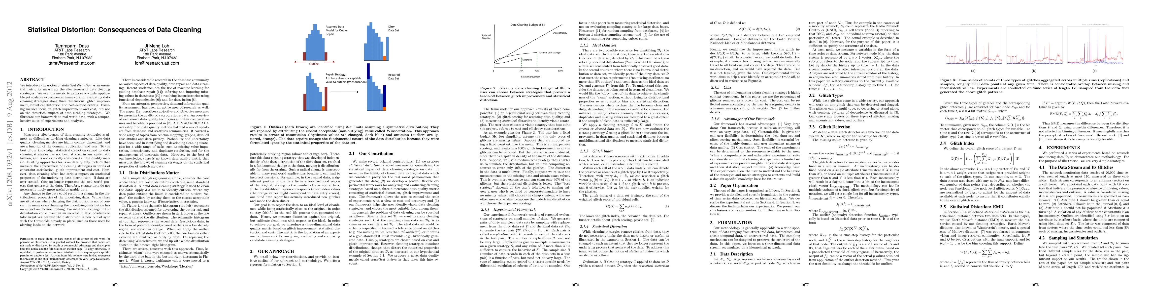 We introduce the notion of statistical distortion as an essential metric for measuring the effectiveness of data cleaning strategies. We use this metric to propose a widely applicable yet scalable experimental framework for evaluating data cleaning strategies along three dimensions: glitch improvement, statistical distortion and cost-related criteria. Existing metrics focus on glitch improvement and cost, but not on the statistical impact of data cleaning strategies. We illustrate our framework on real world data, with a comprehensive suite of experiments and analyses.