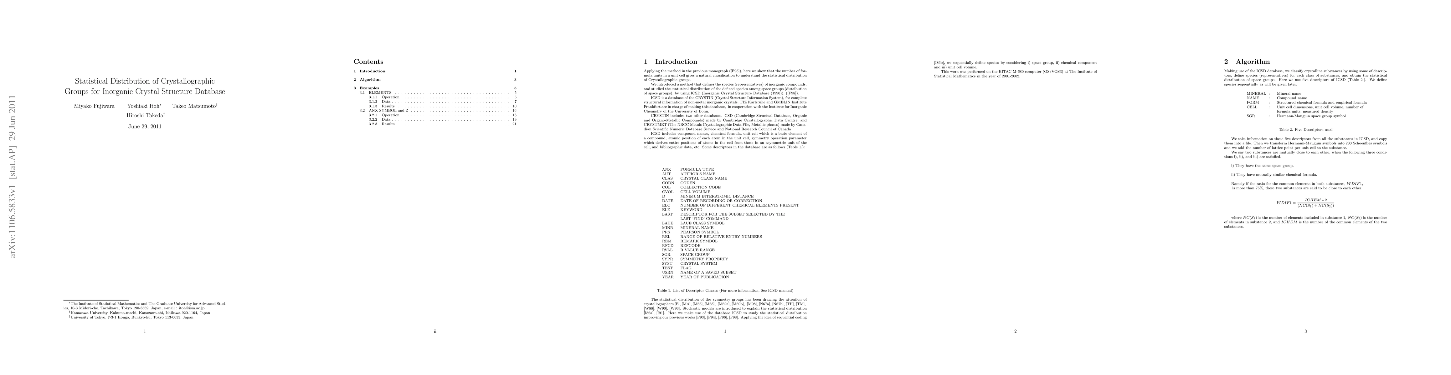 This paper proposes a method to classify inorganic compounds and analyzes the statistical distribution of these classifications across space groups using the ICSD database. It reveals that the number of formula units in a unit cell provides a natural way to understand the distribution of crystallographic groups.