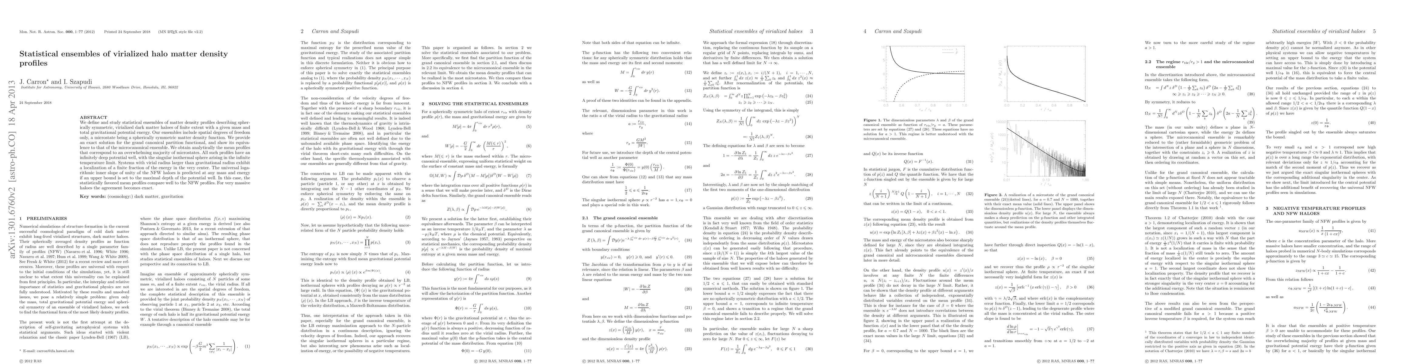 We define and study statistical ensembles of matter density profiles describing spherically symmetric, virialized dark matter haloes of finite extent with a given mass and total gravitational potential energy. Our ensembles include spatial degrees of freedom only, a microstate being a spherically symmetric matter density function. We provide an exact solution for the grand canonical partition functional, and show its equivalence to that of the microcanonical ensemble. We obtain analytically the mean profiles that correspond to an overwhelming majority of microstates. All such profiles have an infinitely deep potential well, with the singular isothermal sphere arising in the infinite temperature limit. Systems with virial radius larger than gravitational radius exhibit a localization of a finite fraction of the energy in the very center. The universal logarithmic inner slope of unity of the NFW haloes is predicted at any mass and energy if an upper bound is set to the maximal depth of the potential well. In this case, the statistically favored mean profiles compare well to the NFW profiles. For very massive haloes the agreement becomes exact.