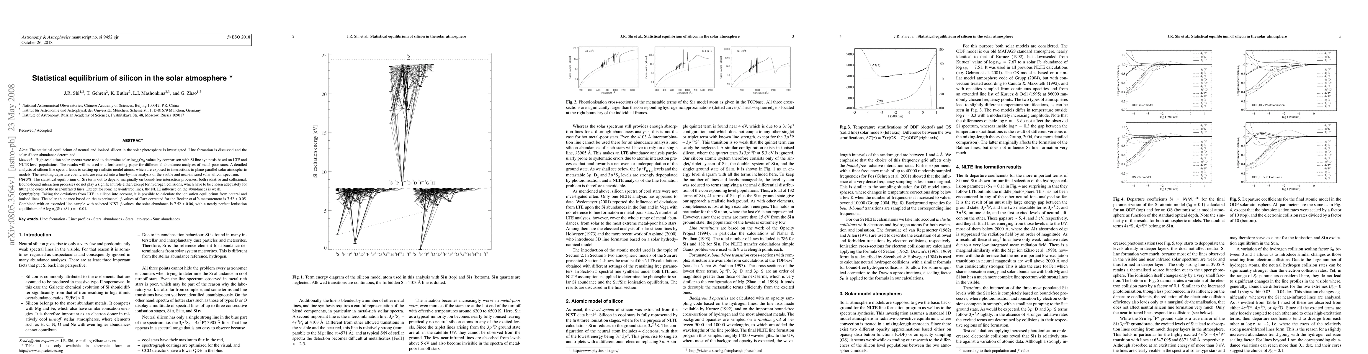This paper investigates the statistical equilibrium of silicon in the solar photosphere, determining the solar silicon abundance through high-resolution spectral analysis. It finds that NLTE effects are minor, except for hydrogen collisions affecting near-infrared lines, and calculates a solar silicon abundance of $7.52 \pm 0.06$.