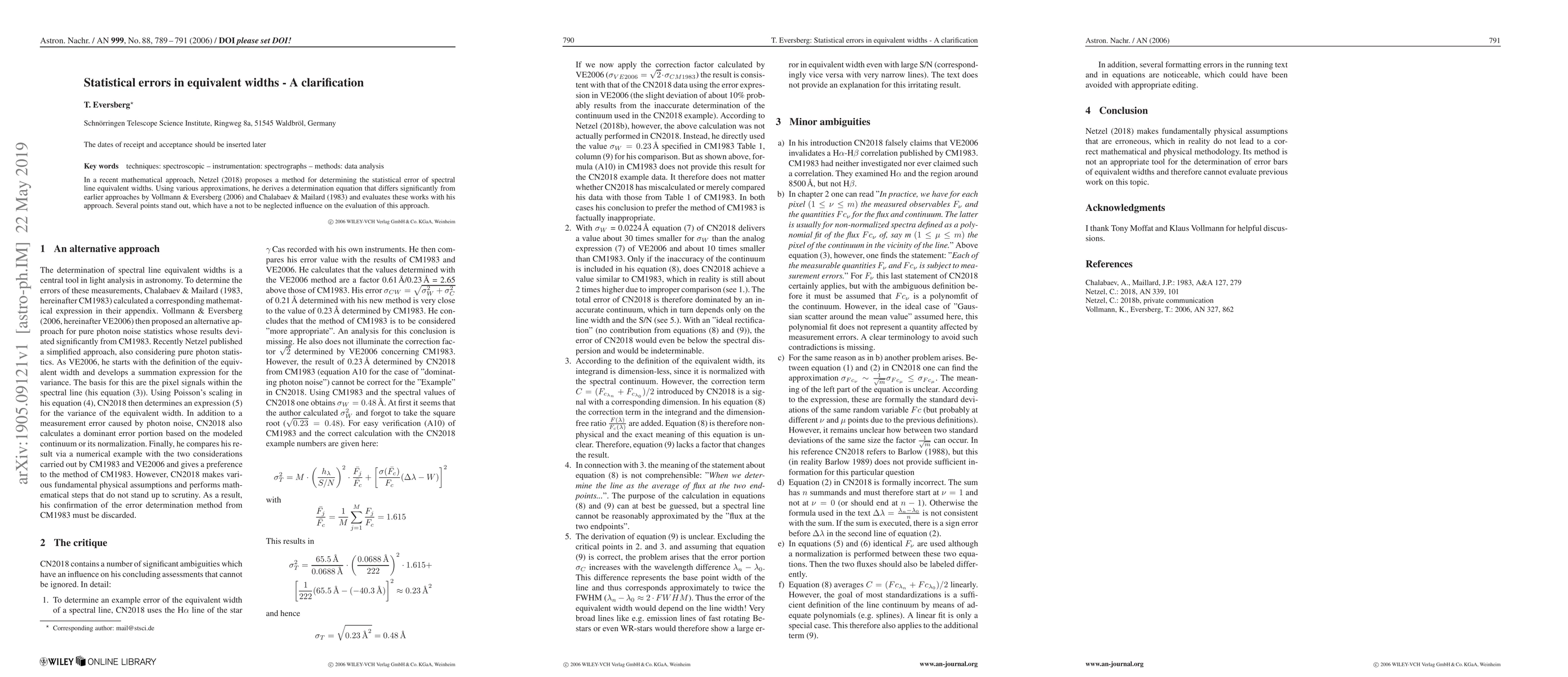 In a recent mathematical approach, Netzel (2018) proposes a method for determining the statistical error of spectral line equivalent widths. Using various approximations, he derives a determination equation that differs significantly from earlier approaches by Vollmann \& Eversberg (2006) and Chalabaev \& Mailard (1983) and evaluates these works with his approach. Several points stand out, which have a not to be neglected influence on the evaluation of this approach.