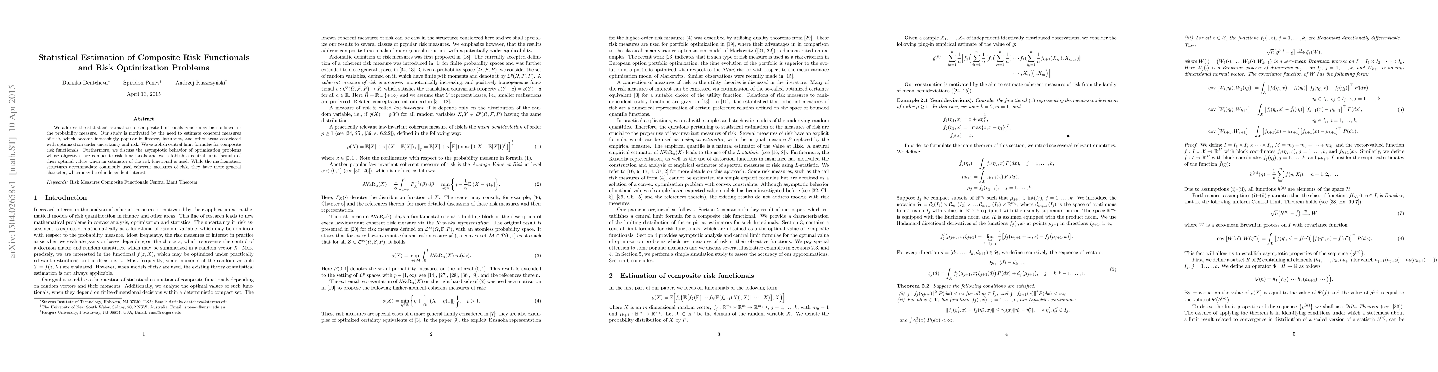 We address the statistical estimation of composite functionals which may be nonlinear in the probability measure. Our study is motivated by the need to estimate coherent measures of risk, which become increasingly popular in finance, insurance, and other areas associated with optimization under uncertainty and risk. We establish central limit formulae for composite risk functionals. Furthermore, we discuss the asymptotic behavior of optimization problems whose objectives are composite risk functionals and we establish a central limit formula of their optimal values when an estimator of the risk functional is used. While the mathematical structures accommodate commonly used coherent measures of risk, they have more general character, which may be of independent interest.