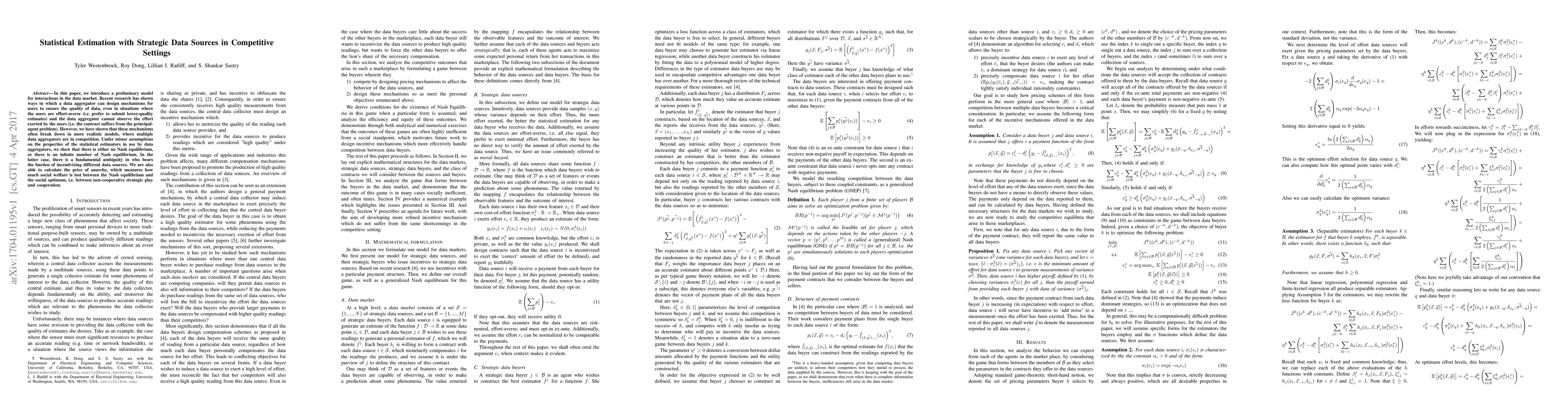 In this paper, we introduce a preliminary model for interactions in the data market. Recent research has shown ways in which a data aggregator can design mechanisms for users to ensure the quality of data, even in situations where the users are effort-averse (i.e. prefer to submit lower-quality estimates) and the data aggregator cannot observe the effort exerted by the users (i.e. the contract suffers from the principal-agent problem). However, we have shown that these mechanisms often break down in more realistic models, where multiple data aggregators are in competition. Under minor assumptions on the properties of the statistical estimators in use by data aggregators, we show that there is either no Nash equilibrium, or there is an infinite number of Nash equilibrium. In the latter case, there is a fundamental ambiguity in who bears the burden of incentivizing different data sources. We are also able to calculate the price of anarchy, which measures how much social welfare is lost between the Nash equilibrium and the social optimum, i.e. between non-cooperative strategic play and cooperation.
