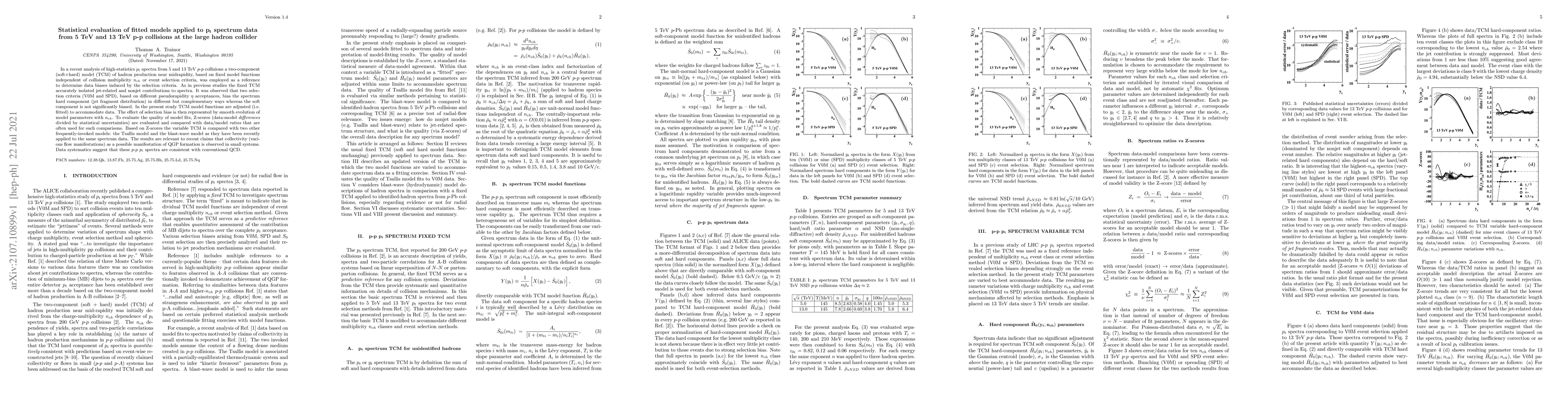 This paper evaluates fitted models for $p_t$ spectra from 5 and 13 TeV $p$-$p$ collisions at the LHC, finding that a two-component model accurately isolates jet-related and nonjet contributions. The study adjusts the model to account for selection biases, comparing its fit quality with the Tsallis and blast-wave models using Z-scores, and concludes that the data are consistent with conventional QCD rather than indicating QGP formation.