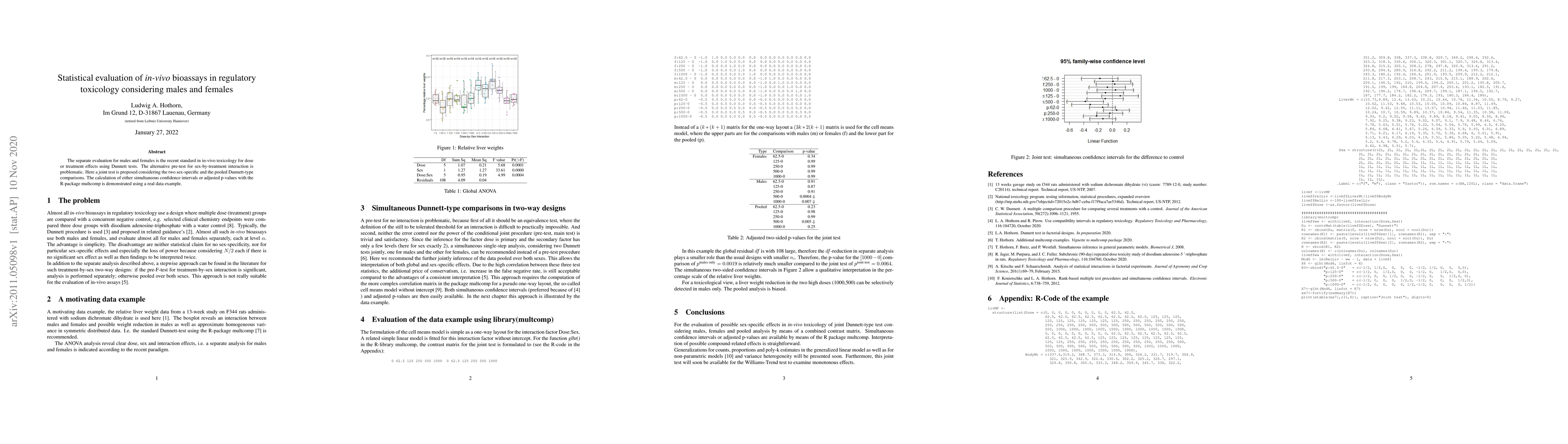 The separate evaluation for males and females is the recent standard in in-vivo toxicology for dose or treatment effects using Dunnett tests. The alternative pre-test for sex-by-treatment interaction is problematic. Here a joint test is proposed considering the two sex-specific and the pooled Dunnett-type comparisons. The calculation of either simultaneous confidence intervals or adjusted p-values with the R-package multcomp is demonstrated using a real data example.