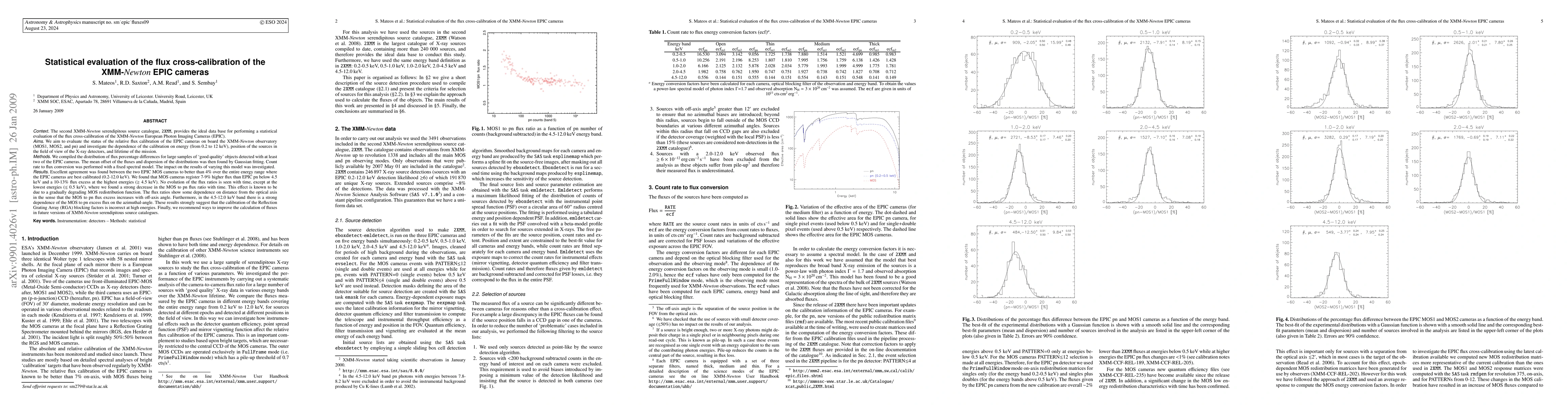 This paper statistically evaluates the flux cross-calibration of the XMM-Newton EPIC cameras, finding excellent agreement between MOS1 and MOS2 below 12 keV but noting discrepancies with the pn camera, especially at lower energies. It also highlights the need for improved calibration of the Reflection Grating Array blocking factors.