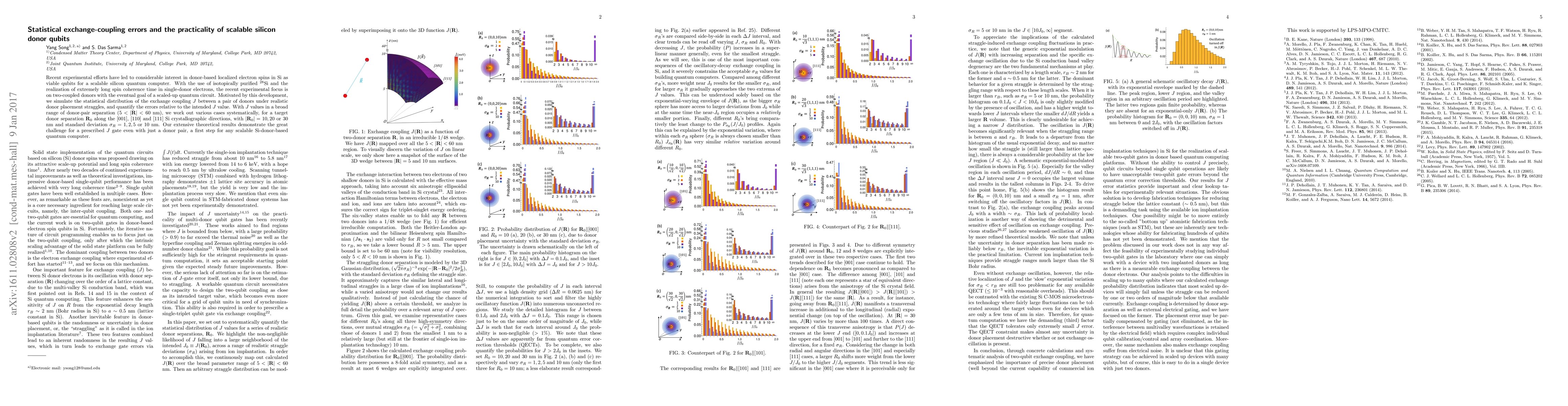 This paper investigates the statistical distribution of exchange coupling errors in silicon donor qubits, finding significant challenges in achieving precise $J$ values due to placement straggles. The study highlights the difficulties in scaling up Si-donor-based quantum circuits despite long coherence times.