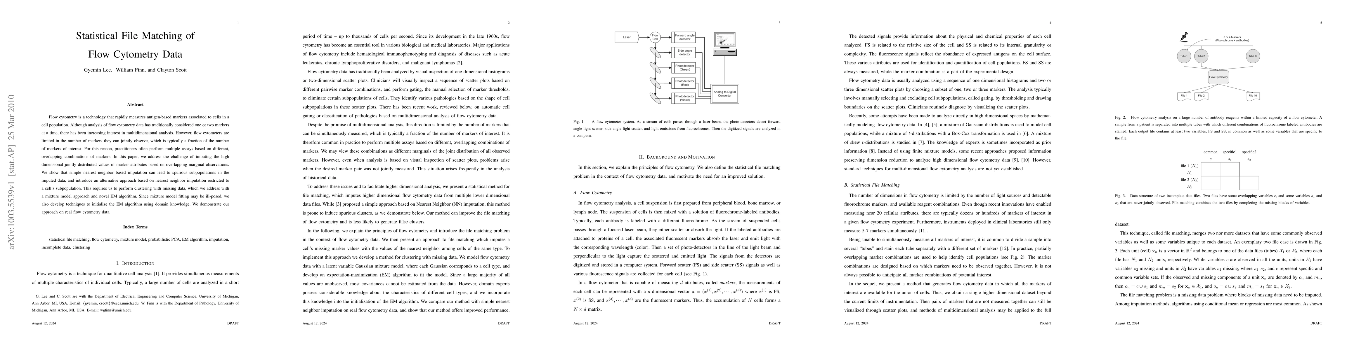 Flow cytometry is a technology that rapidly measures antigen-based markers associated to cells in a cell population. Although analysis of flow cytometry data has traditionally considered one or two markers at a time, there has been increasing interest in multidimensional analysis. However, flow cytometers are limited in the number of markers they can jointly observe, which is typically a fraction of the number of markers of interest. For this reason, practitioners often perform multiple assays based on different, overlapping combinations of markers. In this paper, we address the challenge of imputing the high dimensional jointly distributed values of marker attributes based on overlapping marginal observations. We show that simple nearest neighbor based imputation can lead to spurious subpopulations in the imputed data, and introduce an alternative approach based on nearest neighbor imputation restricted to a cell's subpopulation. This requires us to perform clustering with missing data, which we address with a mixture model approach and novel EM algorithm. Since mixture model fitting may be ill-posed, we also develop techniques to initialize the EM algorithm using domain knowledge. We demonstrate our approach on real flow cytometry data.