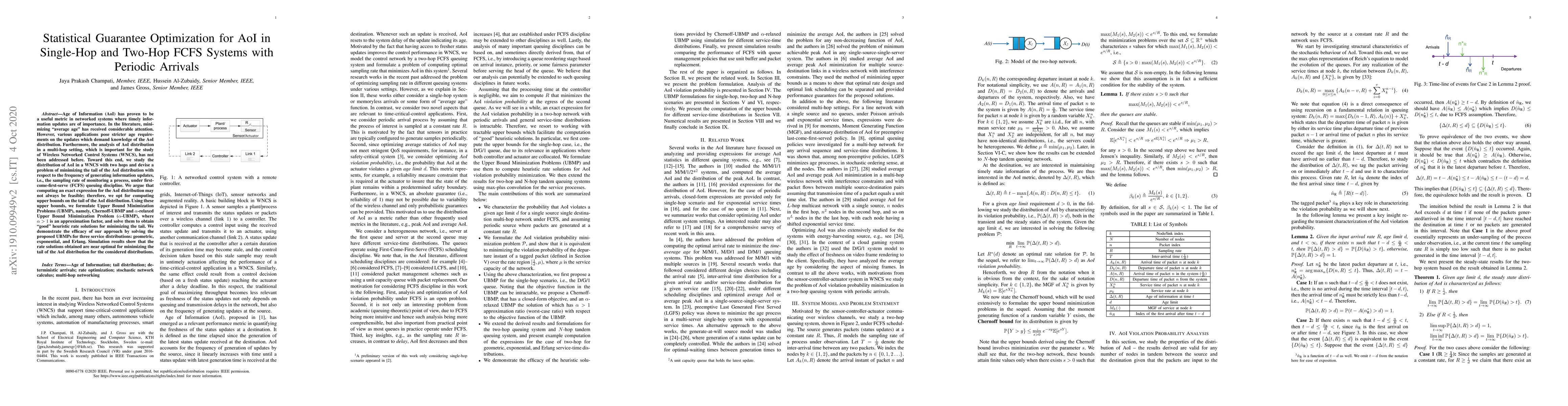 This paper studies age of information (AoI) distribution in wireless networked control systems with two hops, developing upper bound minimization problems to optimize AoI tail with respect to sampling rate.