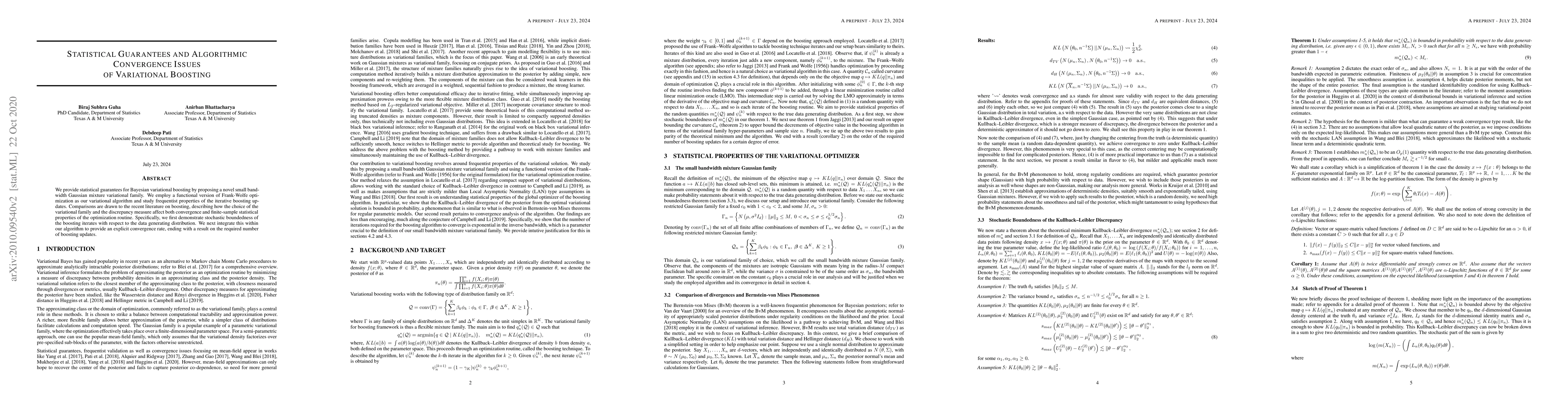 This paper provides statistical guarantees for Bayesian variational boosting using a novel Gaussian mixture variational family, demonstrating stochastic boundedness of boosting iterates and an explicit convergence rate.