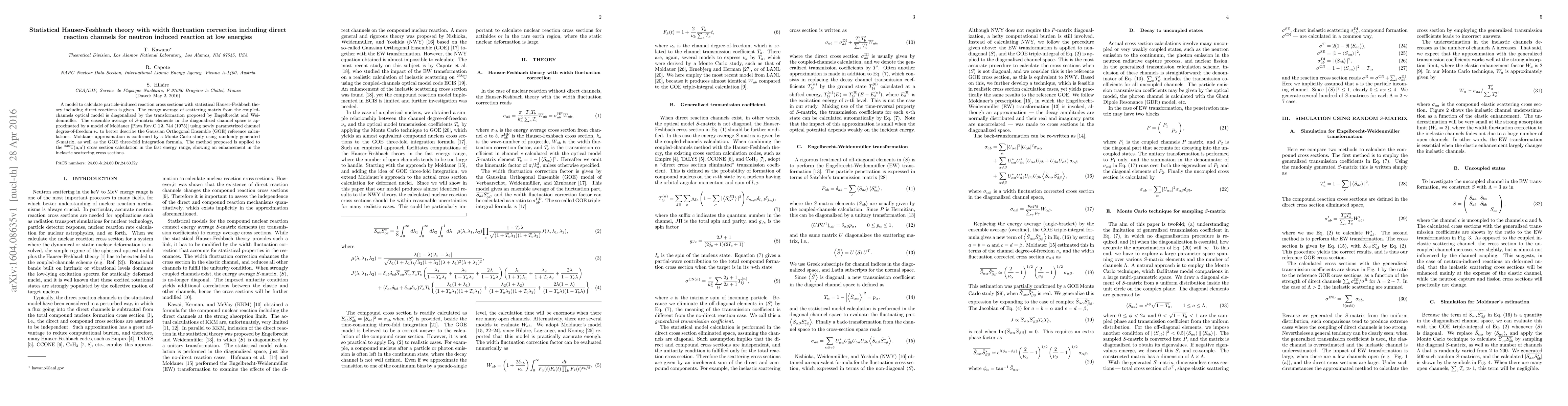 This paper presents a refined statistical Hauser-Feshbach theory incorporating direct reaction channels for neutron-induced reactions at low energies, validated through Monte Carlo simulations and applied to calculate the $^{238}$U(n,n') cross section. The method enhances inelastic scattering cross sections by using a new parametrization for the channel degree-of-freedom.