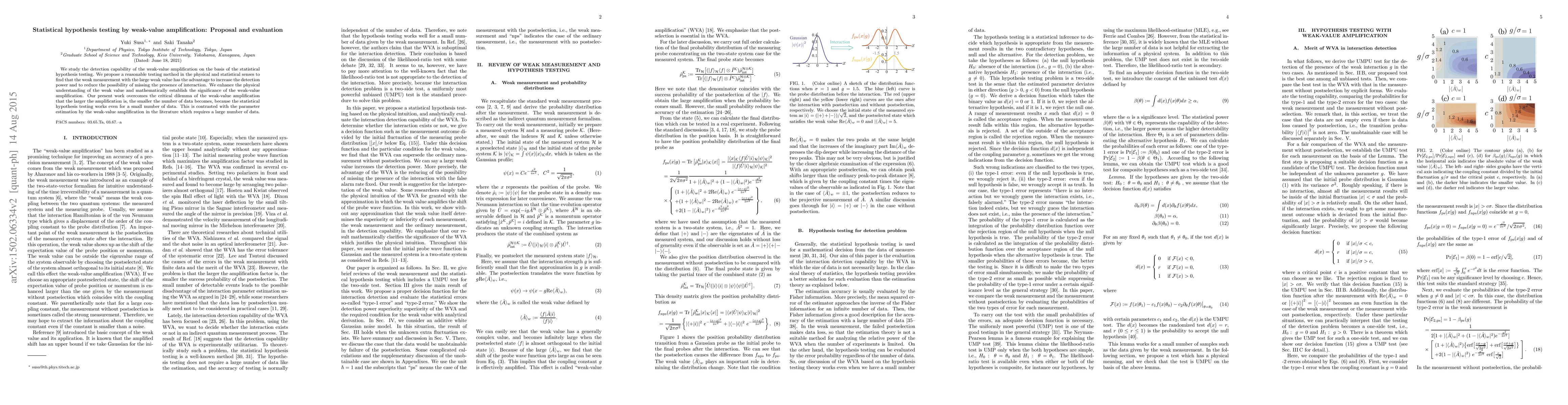 This paper proposes a method for statistical hypothesis testing using weak-value amplification, demonstrating that it enhances detection power and reduces missed interactions, even with limited data. The authors establish the significance of weak-value amplification and address the challenge of diminishing data with increased amplification.