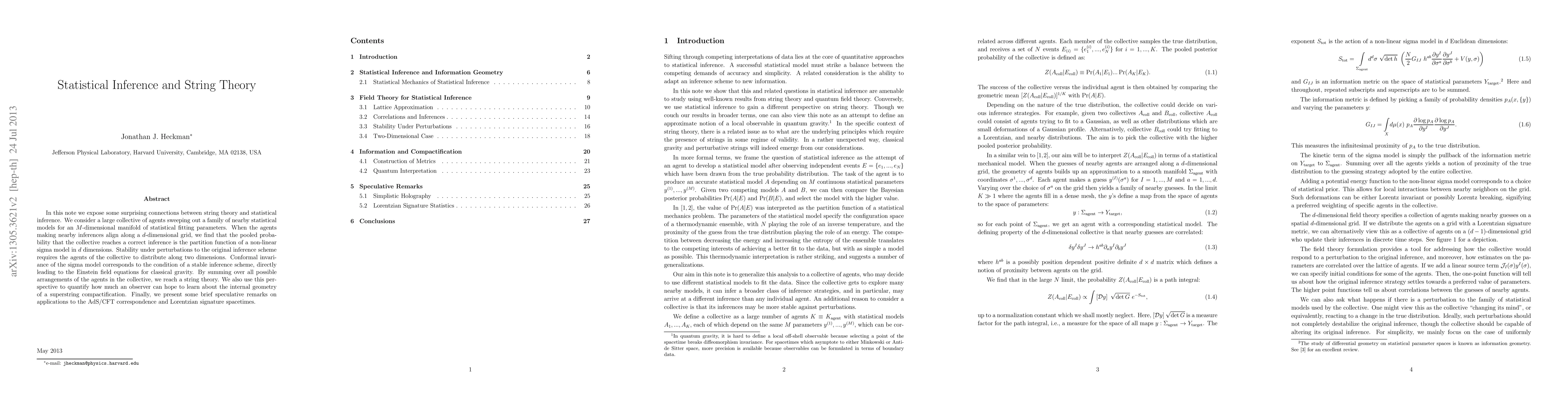 This paper explores surprising links between string theory and statistical inference, showing that the collective behavior of agents aligning along a grid relates to the partition function of a non-linear sigma model, leading to the Einstein field equations. It also discusses the implications for understanding superstring compactifications and potential applications to the AdS/CFT correspondence.