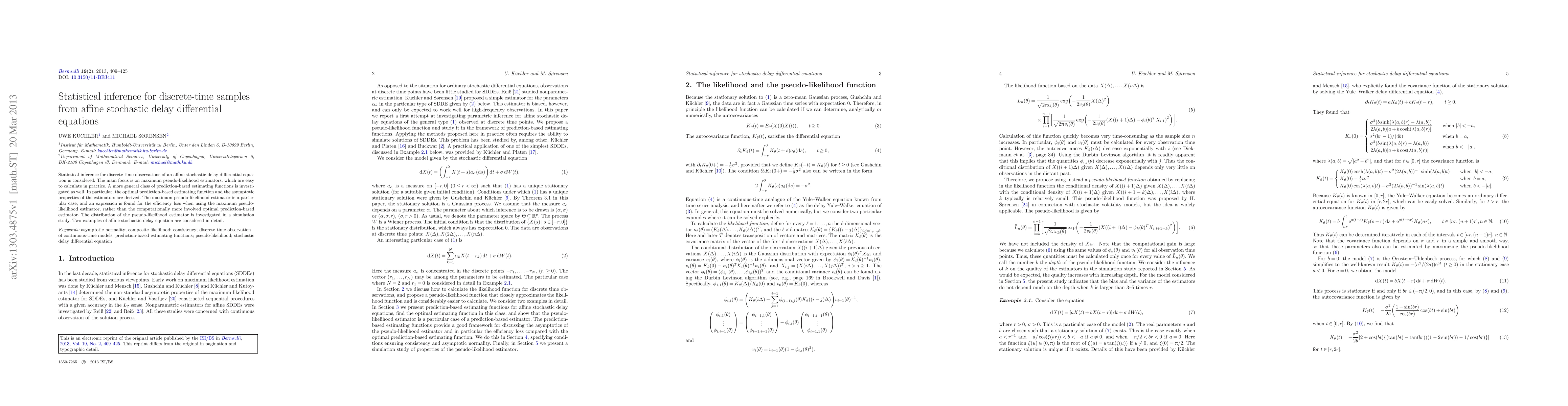 This paper explores statistical inference for discrete-time samples from affine stochastic delay differential equations, focusing on maximum pseudo-likelihood estimators and a broader class of prediction-based estimating functions. It derives the optimal prediction-based estimator, examines its asymptotic properties, and compares it with the maximum pseudo-likelihood estimator in terms of efficiency loss.