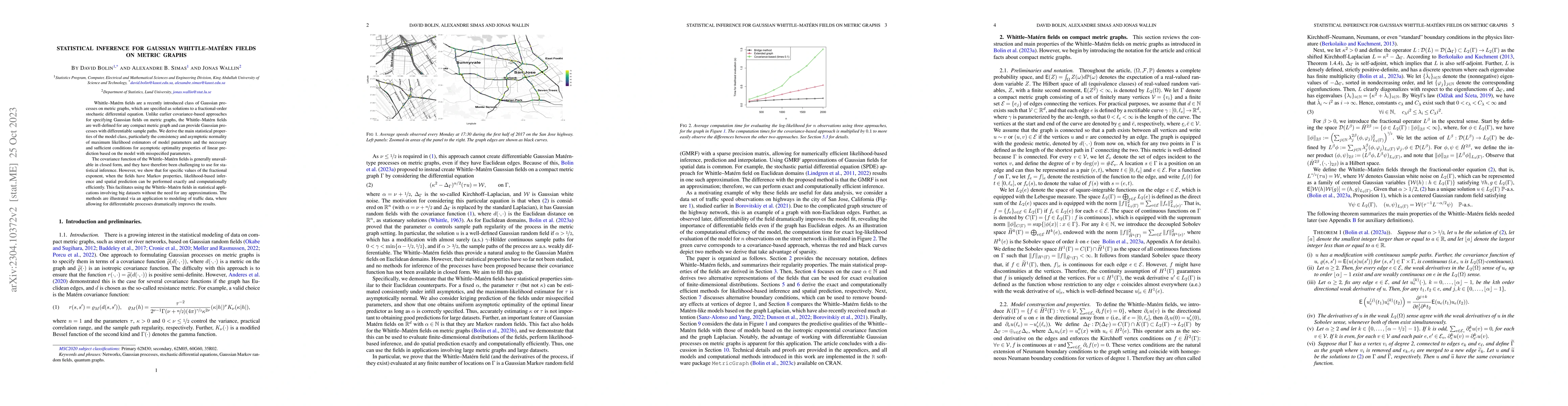 The paper develops a comprehensive statistical inference framework for Gaussian Whittle-Matérn fields on metric graphs, including likelihood estimation, prediction, and conditions for asymptotic optimality.