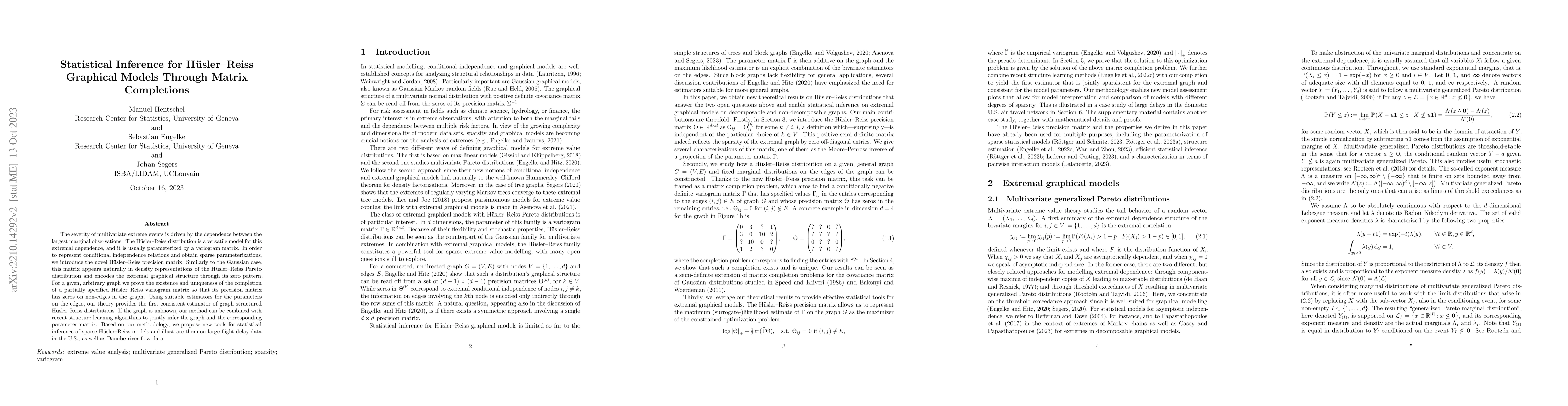 This paper introduces a novel H\"usler-Reiss precision matrix to model extremal dependence in multivariate extreme events, enabling sparse parameterizations and conditional independence relations. It provides a consistent estimator for graph-structured H\"usler-Reiss distributions and proposes new tools for statistical inference, demonstrated through applications to U.S. flight delay and Danube river flow data.