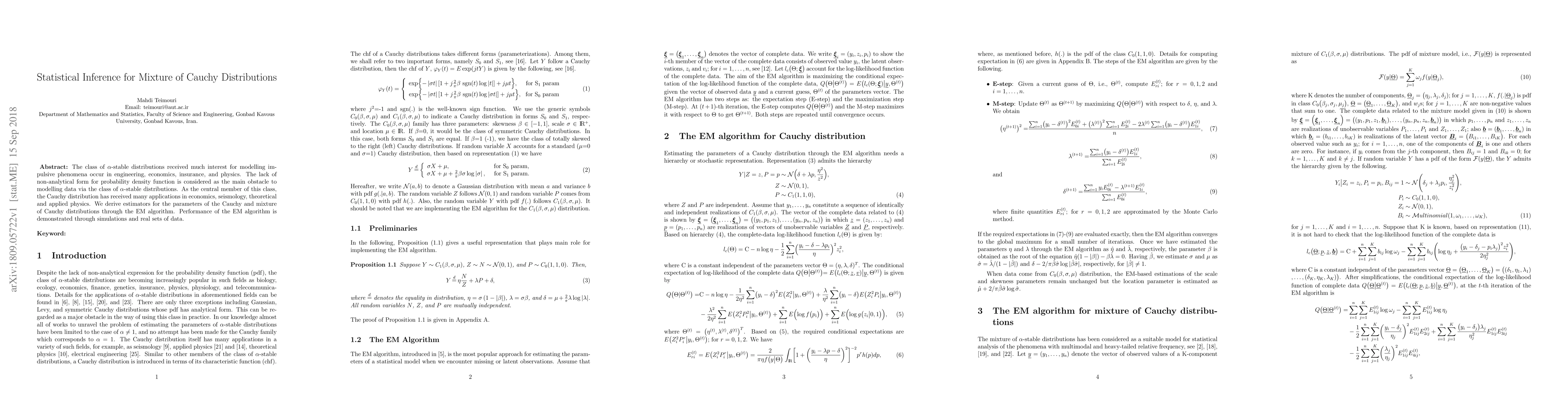 The class of $\alpha$-stable distributions received much interest for modelling impulsive phenomena occur in engineering, economics, insurance, and physics. The lack of non-analytical form for probability density function is considered as the main obstacle to modelling data via the class of $\alpha$-stable distributions. As the central member of this class, the Cauchy distribution has received many applications in economics, seismology, theoretical and applied physics. We derive estimators for the parameters of the Cauchy and mixture of Cauchy distributions through the EM algorithm. Performance of the EM algorithm is demonstrated through simulations and real sets of data.