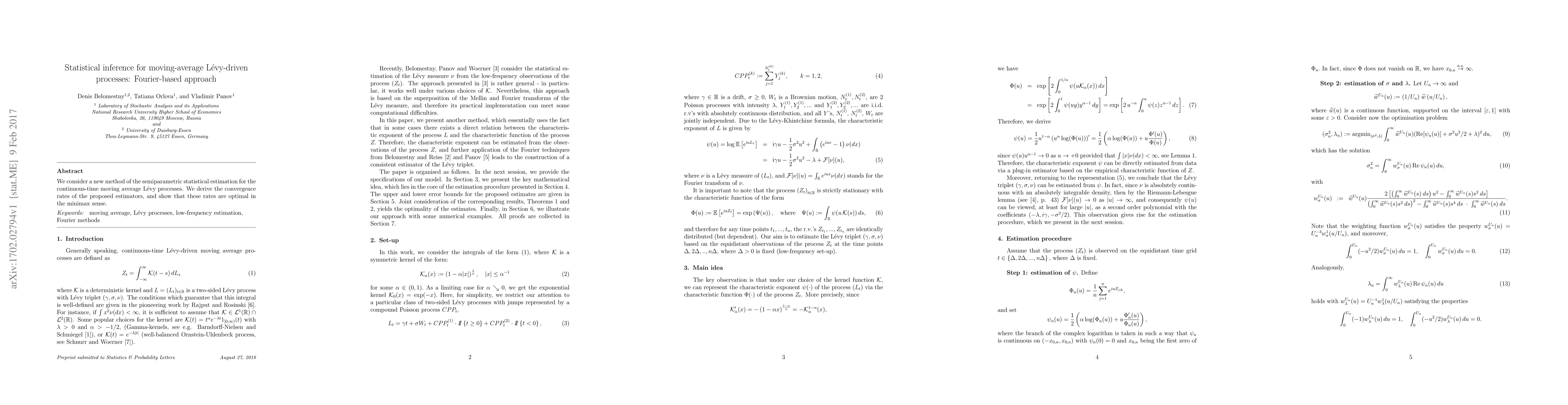 Summary: This paper introduces a novel semiparametric method for estimating continuous-time moving average Lévy processes using a Fourier-based approach, demonstrating optimal convergence rates in the minimax sense.