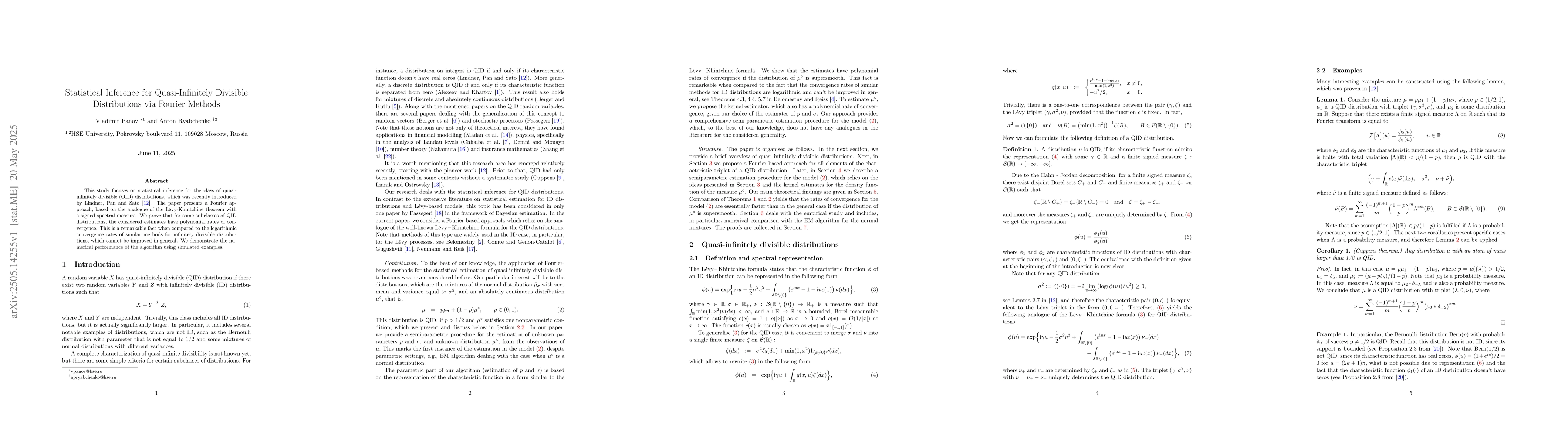 The paper presents a novel Fourier-based approach for statistical inference of QID distributions, leveraging the Lévy-Khintchine theorem with a signed spectral measure.