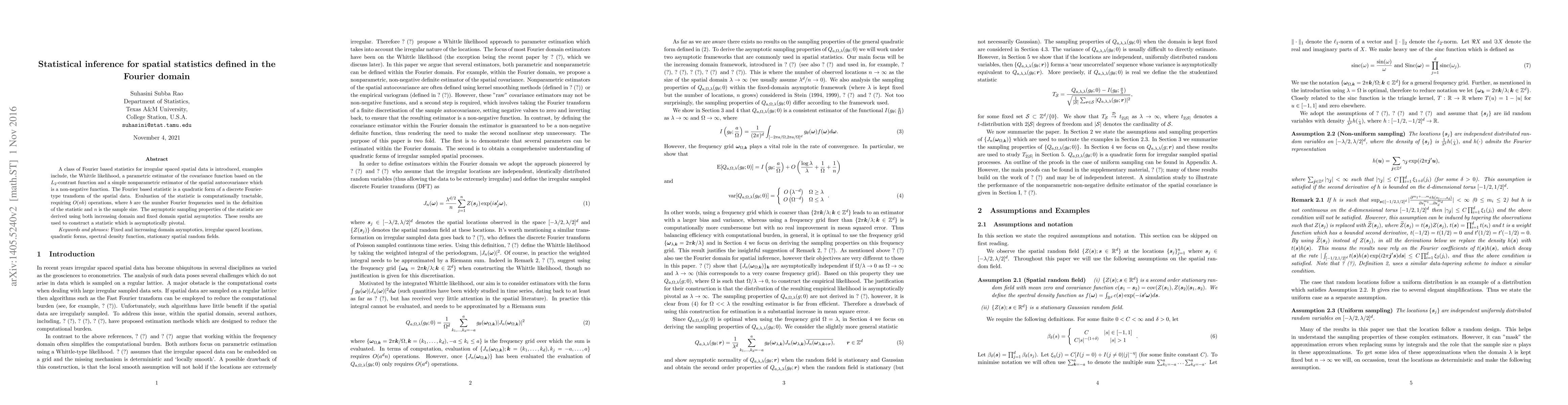 A new class of Fourier-based statistics is introduced for analyzing irregularly spaced spatial data, with computational methods that require only O(nb) operations, where n is sample size and b is the number of Fourier frequencies used.