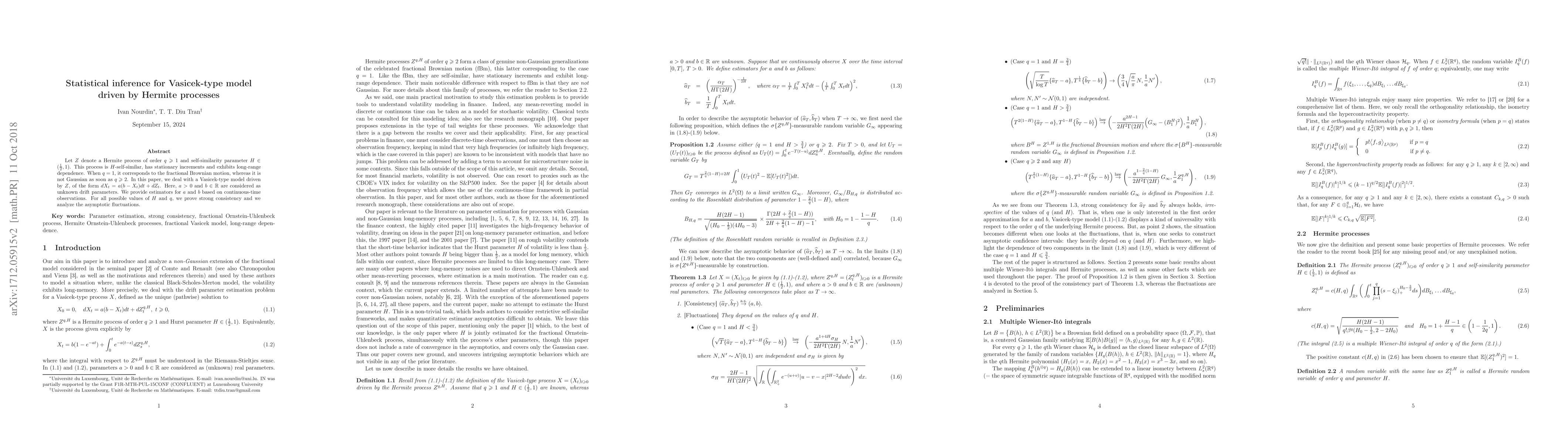 This paper develops statistical inference methods for a Vasicek-type model driven by Hermite processes, providing estimators for drift parameters $a$ and $b$, with strong consistency and asymptotic analysis shown for various values of self-similarity parameter $H$ and order $q$. The results have implications for modeling financial market dynamics.