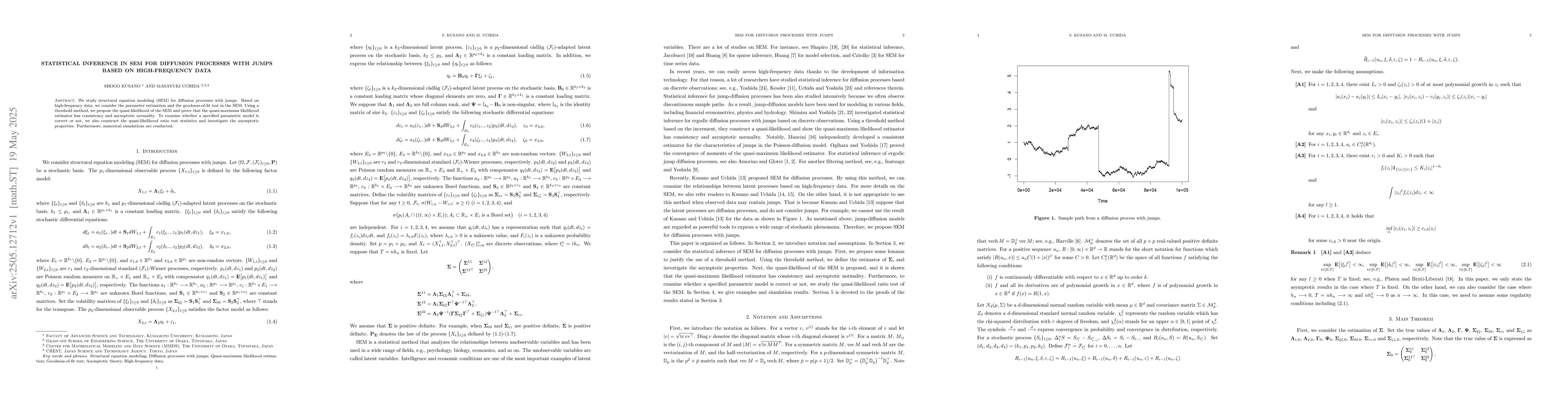 The research employs structural equation modeling (SEM) for diffusion processes with jumps, utilizing high-frequency data for parameter estimation and goodness-of-fit testing. A threshold method is proposed to derive the quasi-likelihood of the SEM, with proofs of consistency and asymptotic normality for the quasi-maximum likelihood estimator. The paper also constructs quasi-likelihood ratio test statistics for model adequacy examination and conducts numerical simulations.