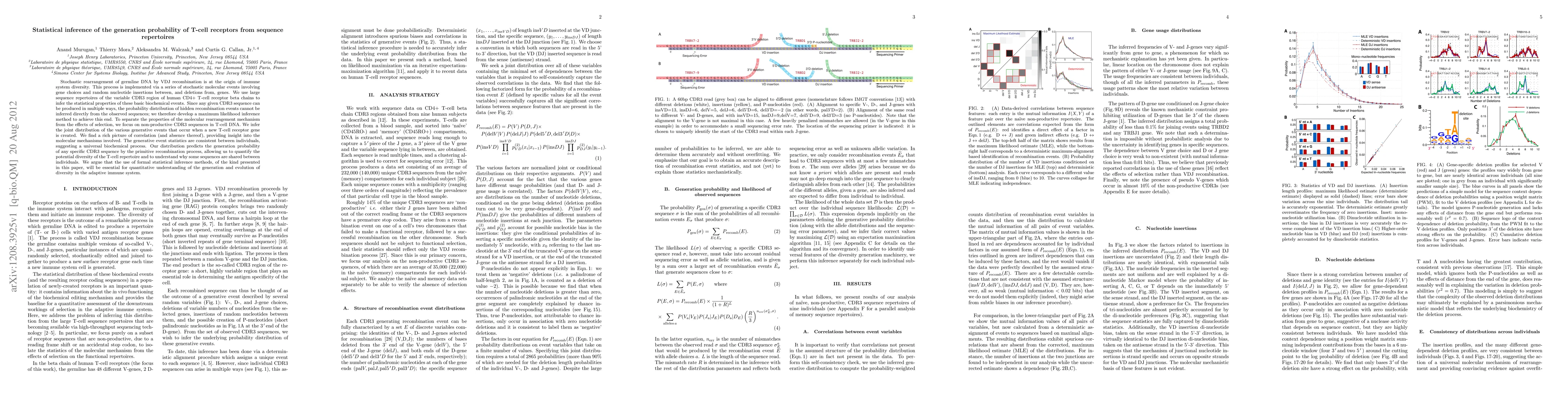 This paper develops a maximum likelihood inference method to statistically deduce the probability of T-cell receptor gene generation from sequence repertoires, focusing on non-productive CDR3 sequences. The study reveals a consistent universal biochemical process and provides insights into the molecular mechanisms of immune system diversity, highlighting the importance of statistical inference for understanding adaptive immune evolution.