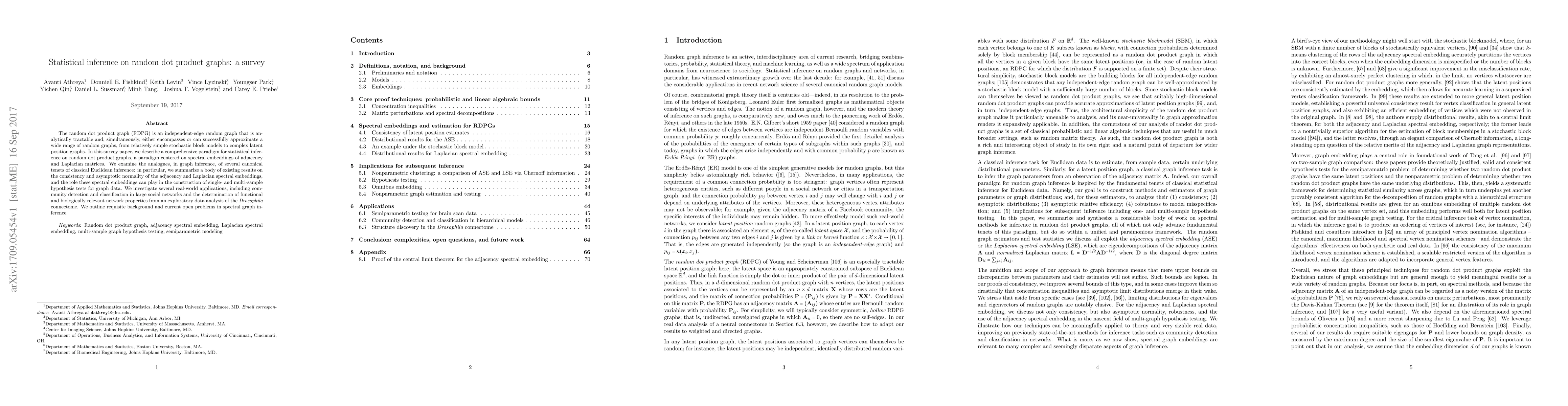This survey provides a comprehensive overview of statistical inference techniques on random dot product graphs, focusing on spectral embeddings for adjacency and Laplacian matrices. It explores consistency, asymptotic normality, and applications like community detection in social networks and network analysis in biology.