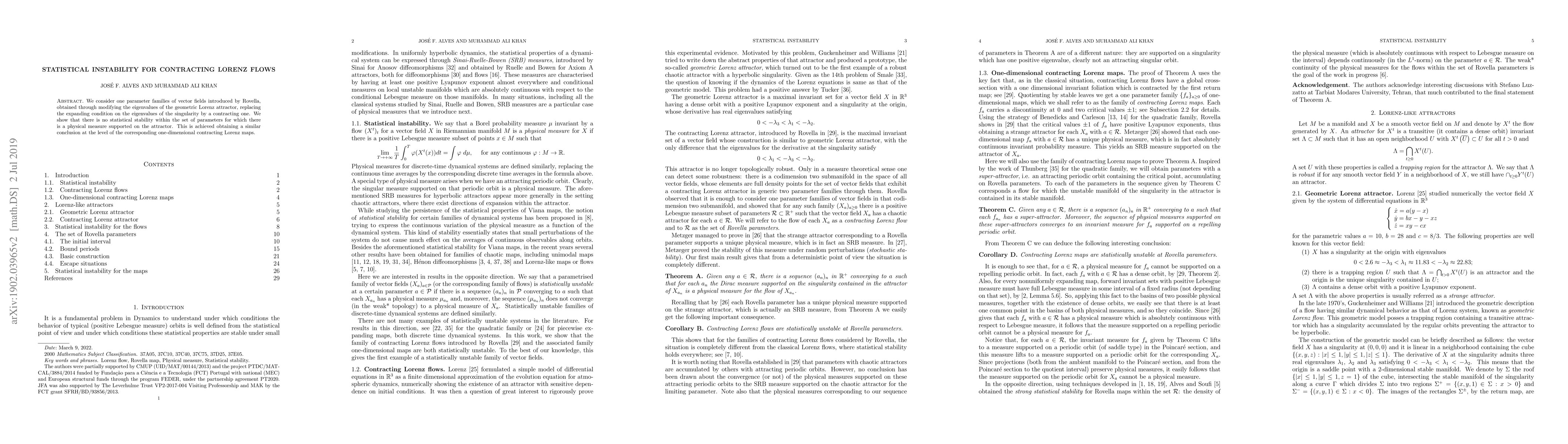 This paper investigates parameter families of modified Lorenz flows with contracting singularities, showing a lack of statistical stability within the parameter set supporting a physical measure on the attractor, analogously demonstrated in the corresponding one-dimensional Lorenz maps.