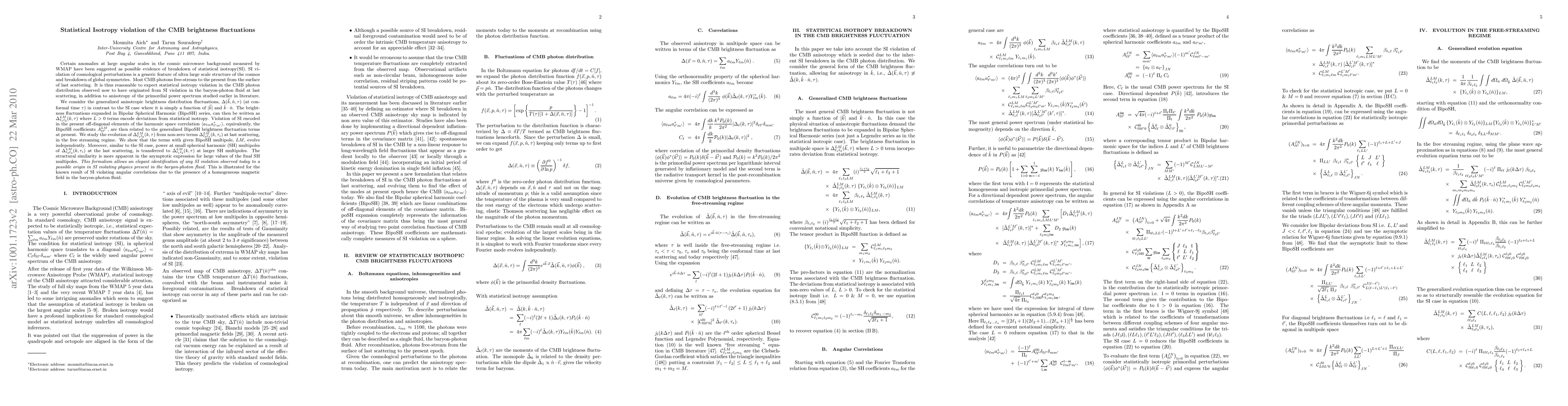 This paper investigates anomalies in the cosmic microwave background (CMB) brightness fluctuations suggesting a breakdown of statistical isotropy. It proposes a generalized anisotropic brightness distribution model to identify deviations from statistical isotropy, linking observed CMB violations to potential SI violations in the baryon-photon fluid at the surface of last scattering.
