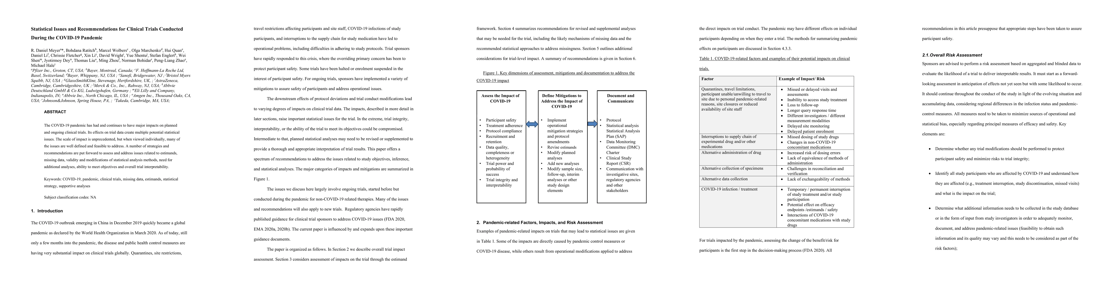 The COVID-19 pandemic has introduced unprecedented statistical challenges to clinical trials, but well-defined strategies can address issues like estimands, missing data, and modifications in analysis methods. Recommendations focus on maintaining trial objectives and interpretability amidst these disruptions.