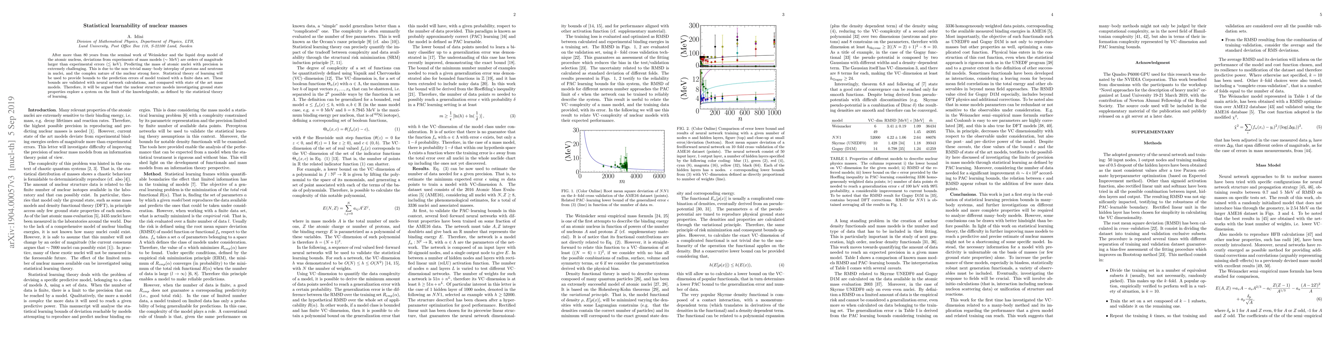 This paper explores the statistical learnability of nuclear masses using modern machine learning techniques, demonstrating that current models still have significant prediction errors despite decades of development. The study validates these findings with neural network calculations and argues that existing nuclear models are at the edge of what can be learned given current data.