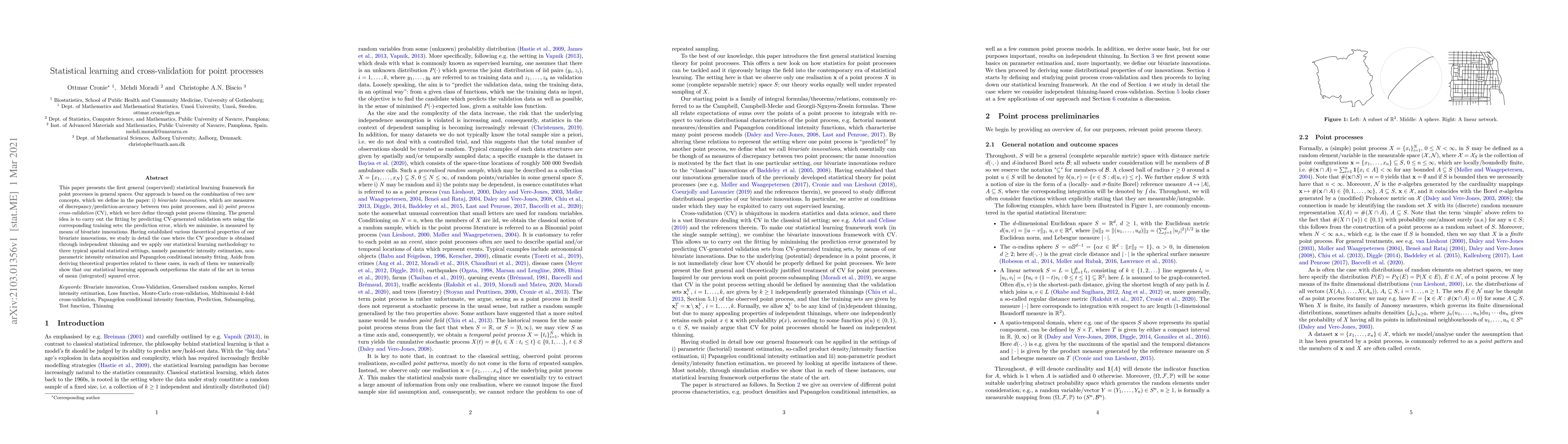 This paper introduces a novel statistical learning framework for point processes, utilizing bivariate innovations and point process cross-validation through thinning. The proposed method is shown to outperform existing techniques in parametric and non-parametric intensity estimation and conditional intensity fitting.