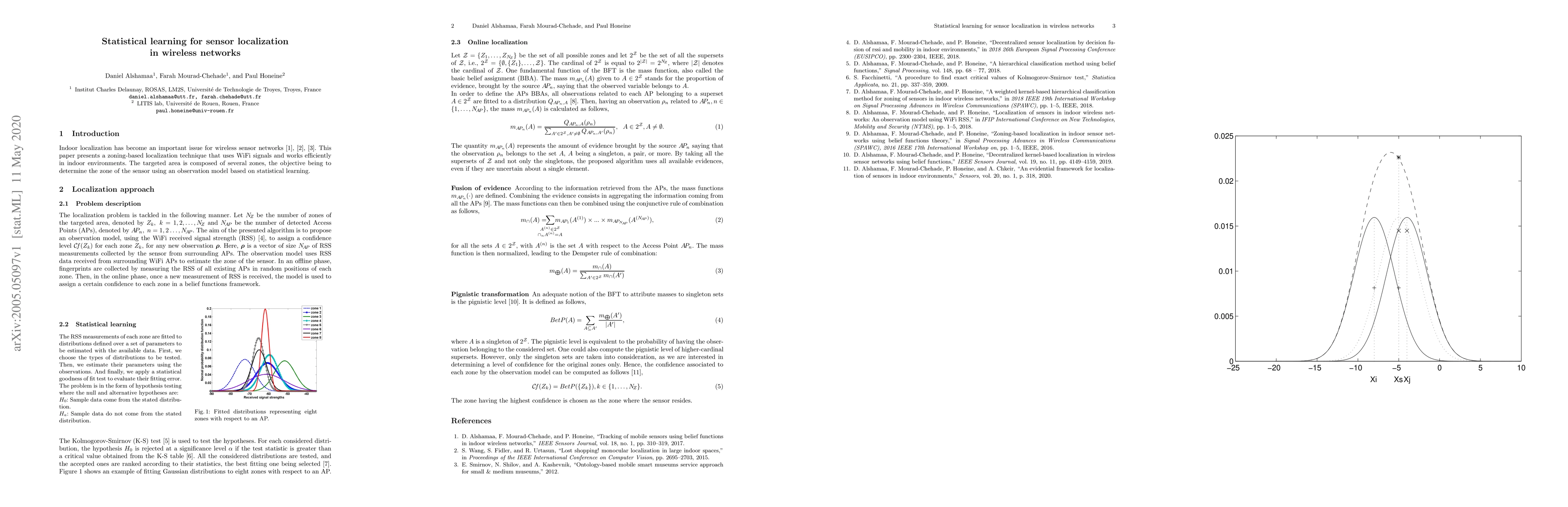 Indoor localization has become an important issue for wireless sensor networks. This paper presents a zoning-based localization technique that uses WiFi signals and works efficiently in indoor environments. The targeted area is composed of several zones, the objective being to determine the zone of the sensor using an observation model based on statistical learning.