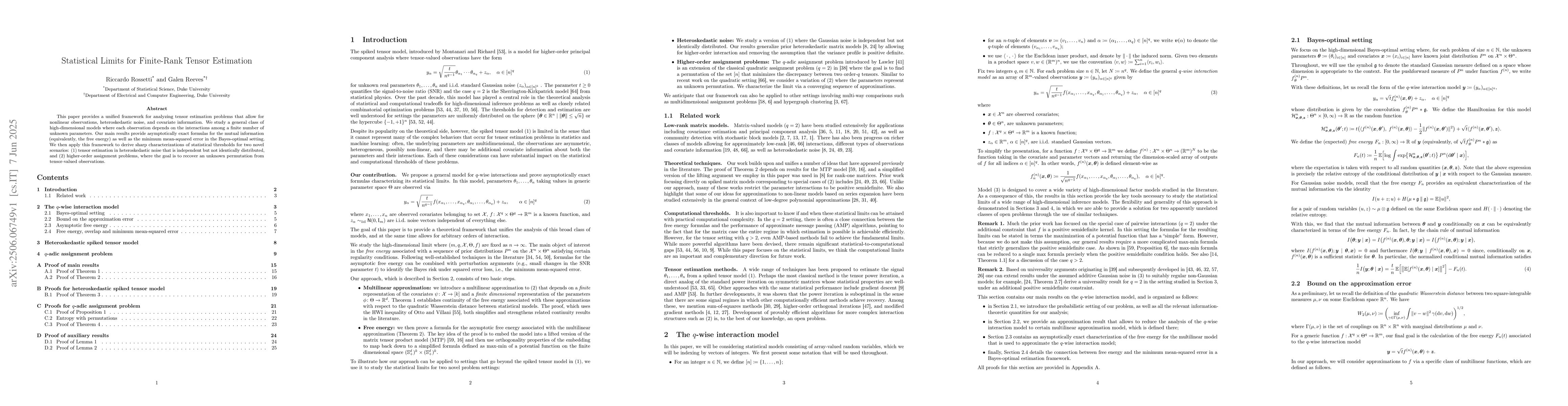 This paper provides a unified framework for analyzing tensor estimation problems that allow for nonlinear observations, heteroskedastic noise, and covariate information. We study a general class of high-dimensional models where each observation depends on the interactions among a finite number of unknown parameters. Our main results provide asymptotically exact formulas for the mutual information (equivalently, the free energy) as well as the minimum mean-squared error in the Bayes-optimal setting. We then apply this framework to derive sharp characterizations of statistical thresholds for two novel scenarios: (1) tensor estimation in heteroskedastic noise that is independent but not identically distributed, and (2) higher-order assignment problems, where the goal is to recover an unknown permutation from tensor-valued observations.