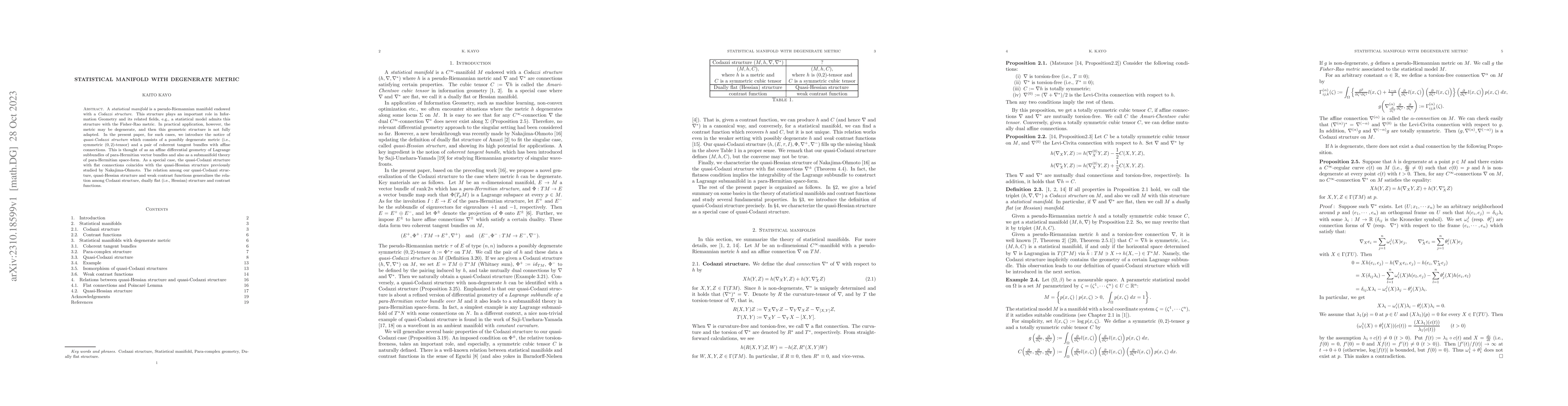 This paper introduces the quasi-Codazzi structure to address degenerate metrics in statistical manifolds, generalizing the Codazzi structure in Information Geometry. It aligns with affine differential geometry and submanifold theory of para-Hermitian vector bundles.