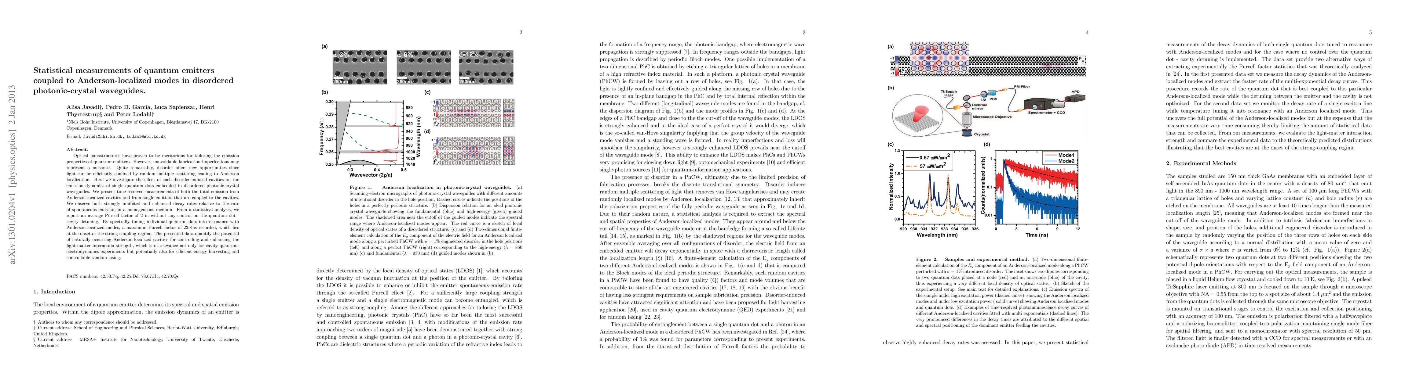 This paper investigates how Anderson localization in disordered photonic-crystal waveguides affects the emission dynamics of quantum dots. Statistical measurements reveal an average Purcell factor of 2, with a maximum of 23.8 achieved through spectral tuning, highlighting the potential for enhanced light-matter interaction in such systems.