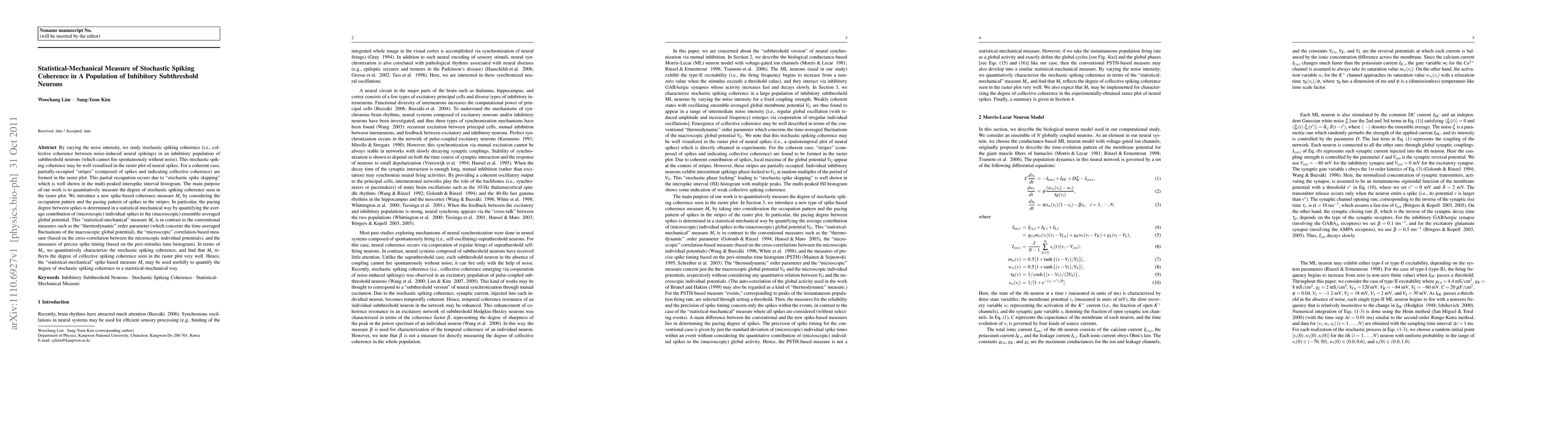 Researchers developed a new statistical-mechanical measure to quantify stochastic spiking coherence in inhibitory subthreshold neurons, finding that it accurately reflects the degree of collective spiking patterns.