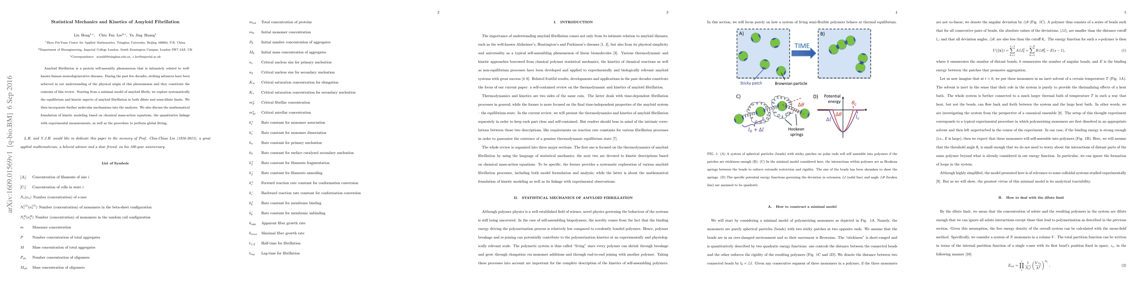 This paper reviews advances in understanding amyloid fibrillation, a protein self-assembly phenomenon linked to neurodegenerative diseases, using statistical mechanics and kinetic modeling. The study explores equilibrium and kinetic aspects of amyloid fibrillation and discusses its mathematical foundation and experimental linkages.