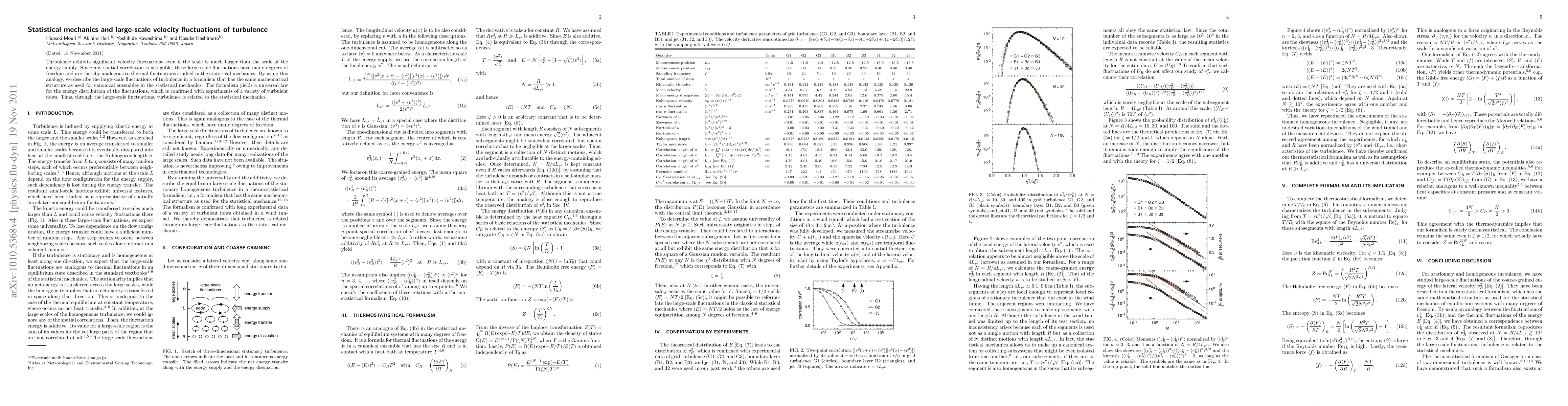Turbulence exhibits significant velocity fluctuations even if the scale is much larger than the scale of the energy supply. Since any spatial correlation is negligible, these large-scale fluctuations have many degrees of freedom and are thereby analogous to thermal fluctuations studied in the statistical mechanics. By using this analogy, we describe the large-scale fluctuations of turbulence in a formalism that has the same mathematical structure as used for canonical ensembles in the statistical mechanics. The formalism yields a universal law for the energy distribution of the fluctuations, which is confirmed with experiments of a variety of turbulent flows. Thus, through the large-scale fluctuations, turbulence is related to the statistical mechanics.