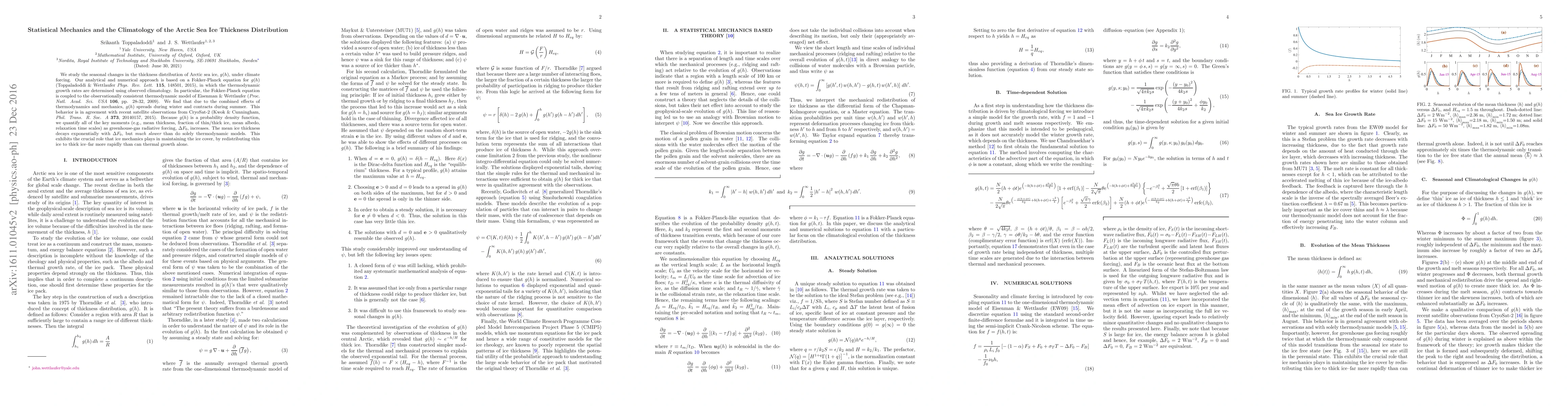The study employs statistical mechanics and a Fokker-Planck equation approach to analyze the seasonal changes in Arctic sea ice thickness distribution under climate forcing. It integrates an observed climatology-based thermodynamic growth model from Eisenman and Wettlaufer (2009) with mechanical effects.