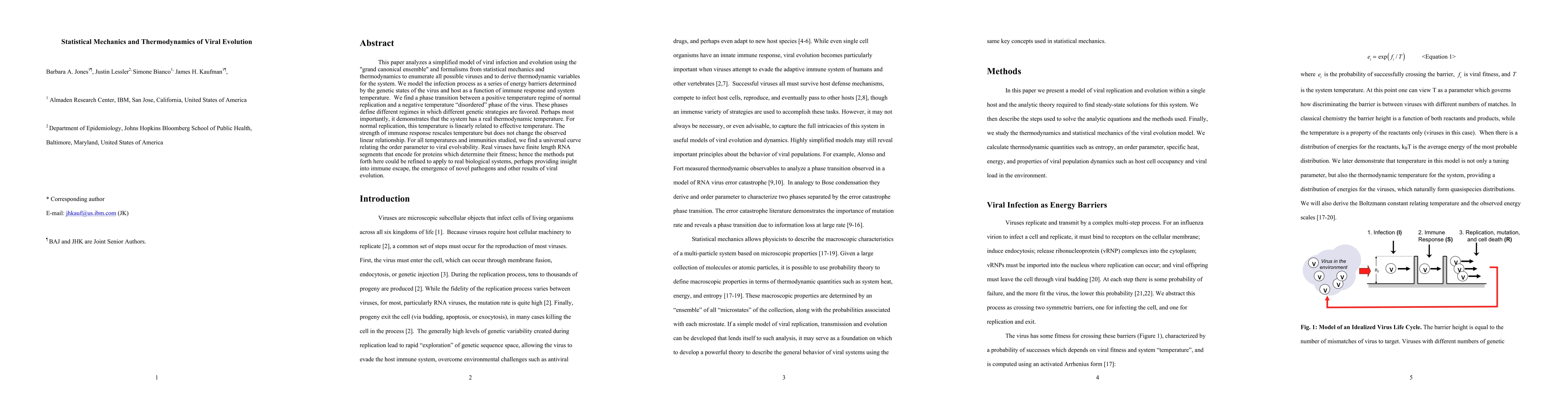 This paper employs statistical mechanics and thermodynamics to model viral evolution, identifying a phase transition between normal replication and a disordered phase, and demonstrating a real thermodynamic temperature for viral systems. The study reveals a universal curve linking viral evolvability to the order parameter, suggesting potential applications to understanding immune escape and viral emergence.