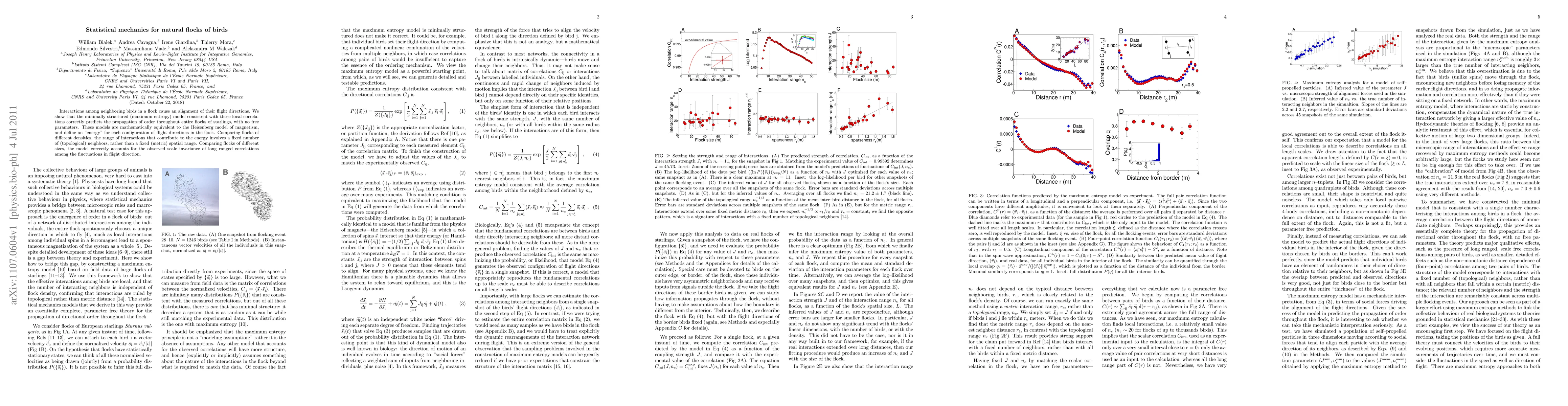 The research employs statistical mechanics to model natural flocks of birds, using a maximum entropy model consistent with local correlations to predict order propagation throughout flocks without free parameters. The model is mathematically equivalent to the Heisenberg model of magnetism, defining an 'energy' for each configuration of flight directions.